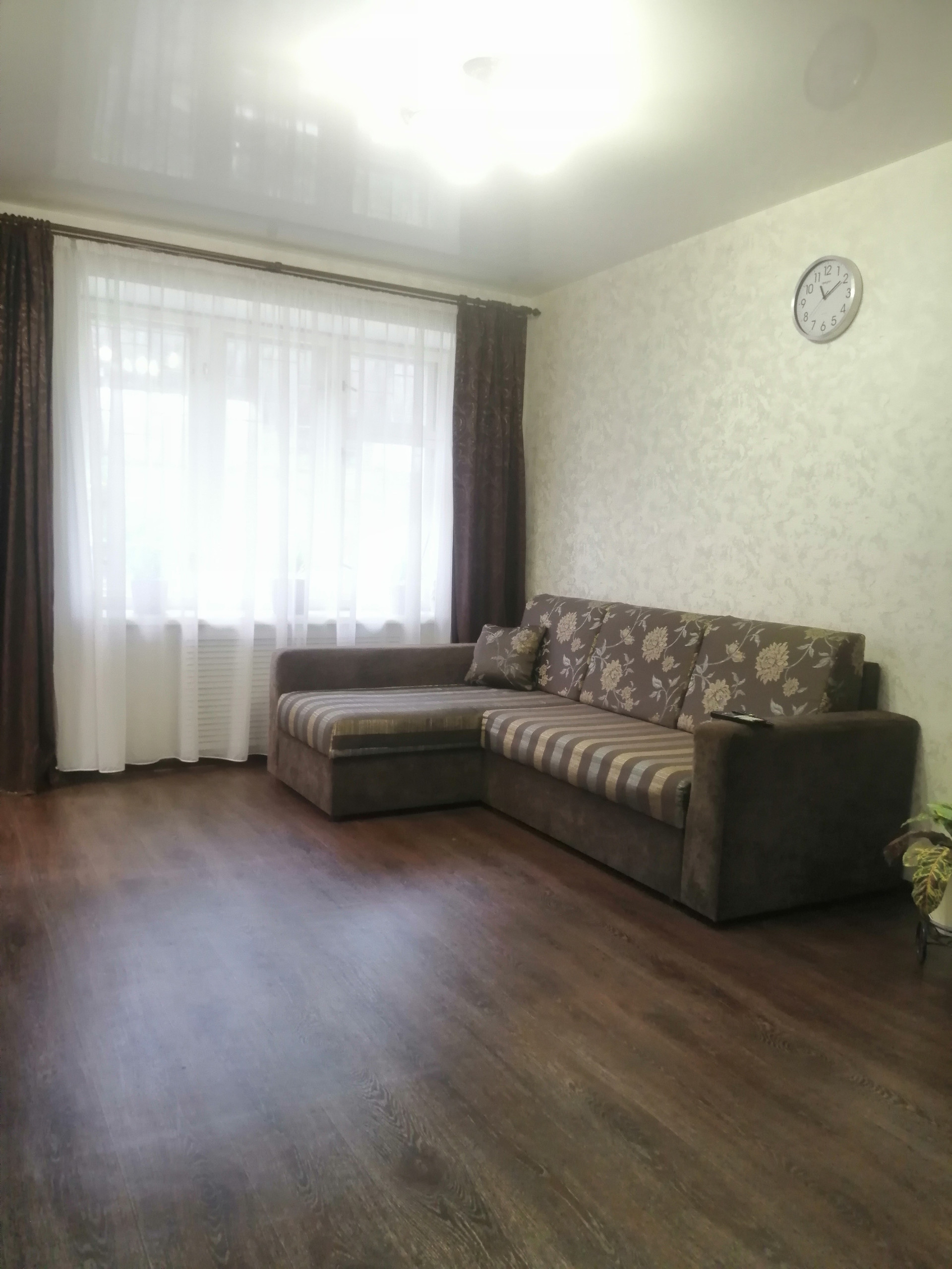 В квартире сделан качественный и продуманный ремонт. Заменены окна, входная дверь (установлены две двери), поменяна вся электрика, полы, сантехника и трубы, заменены межкомнатные стены и двери, установлены натяжные потолки. На полу в комнатах линолеум с имитацией ламината, в кухне и санузеле плитка.