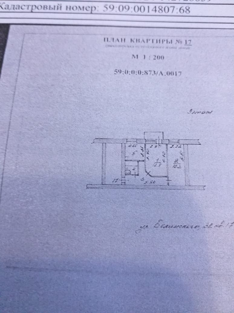 2-комнатная квартира, 43.1 м2, этаж 3 / 3, на продажу в Лысьве, улица Белинского, 32