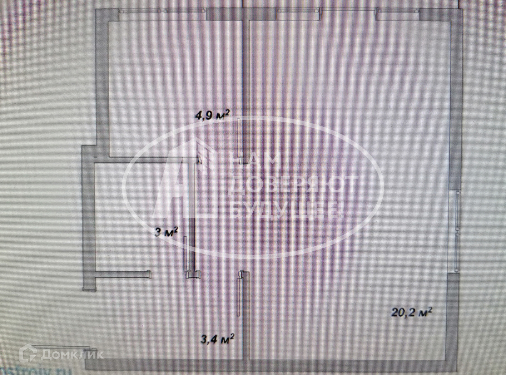Общая площадь 29.6 м2