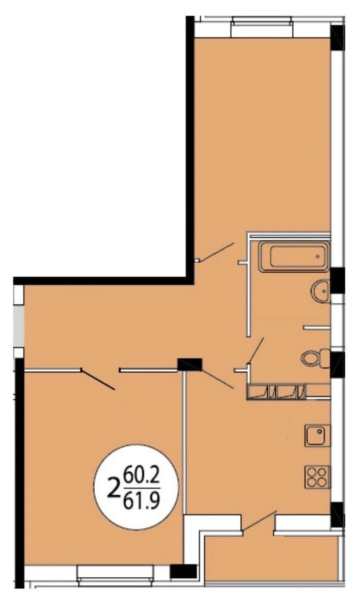 Общая площадь 60.2 м2