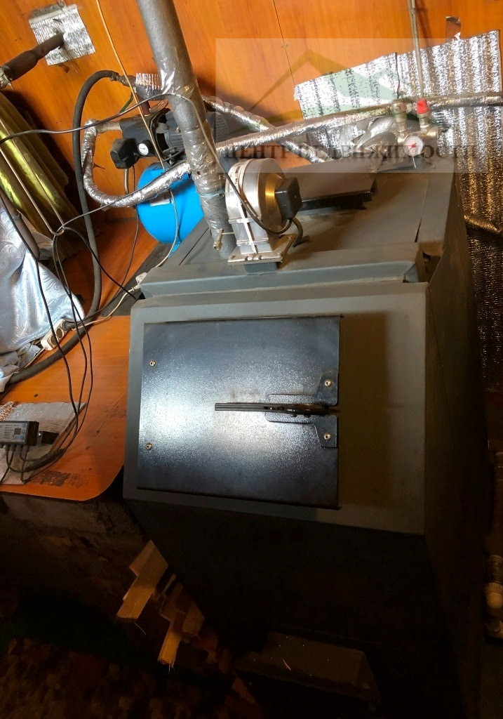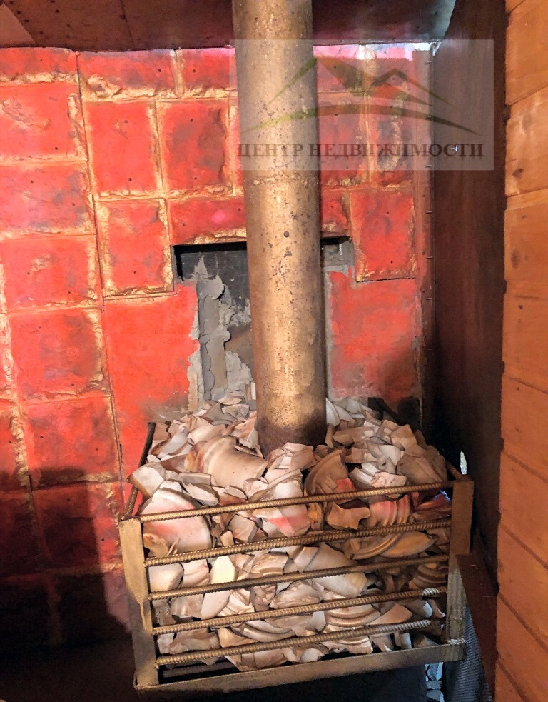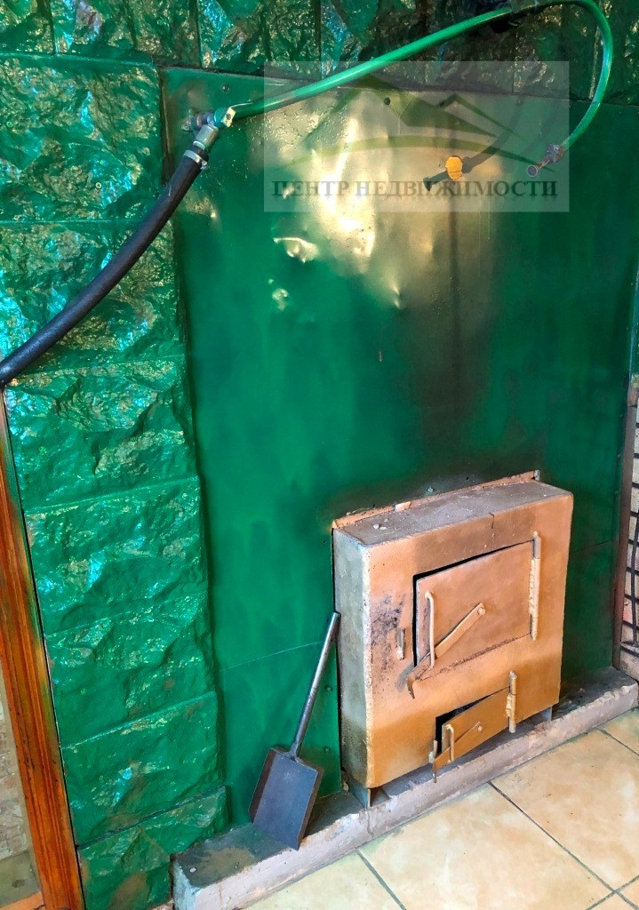 В крытом переходе от дома к бане и гостевому дому находится котел и угольник.