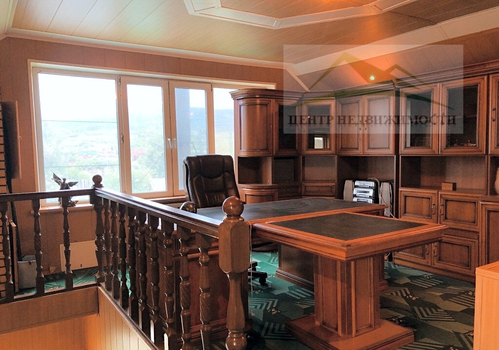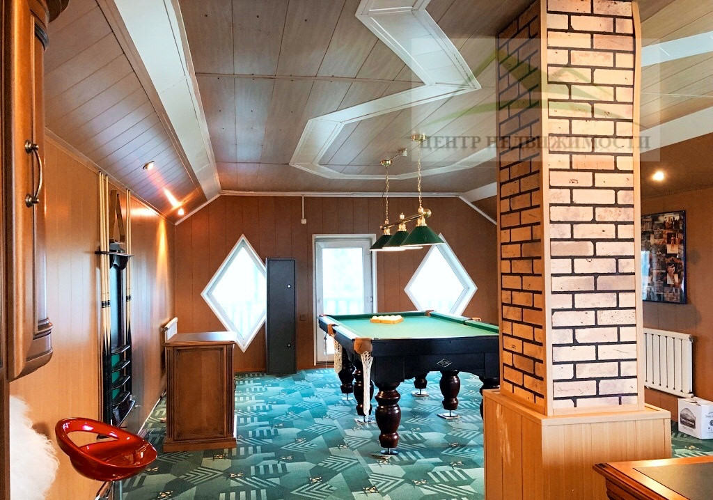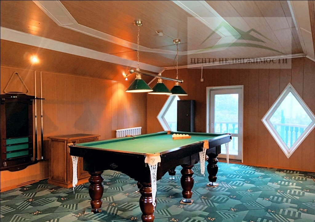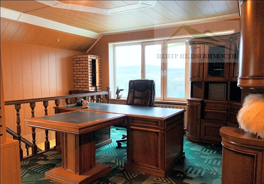 ∙ Третий этаж, площадь 45,4 кв. м., кабинет, место для отдыха, небольшой балкон. Установлен бильярд, рабочая зона, места для хранения документов.