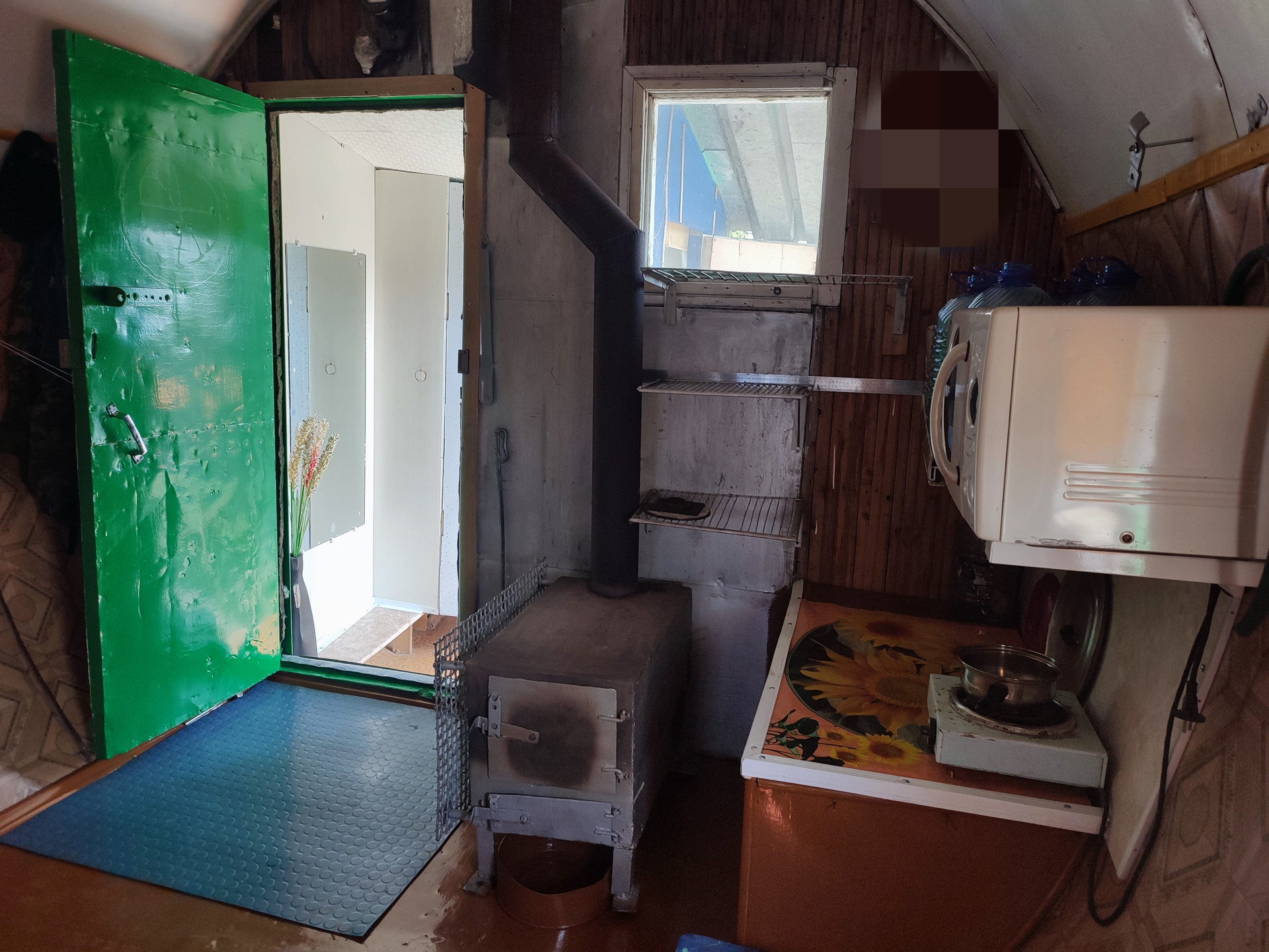 Арктический домик в виде бочки (кухня и комната) печное отопление, домик быстро прогревается, проведен слив.