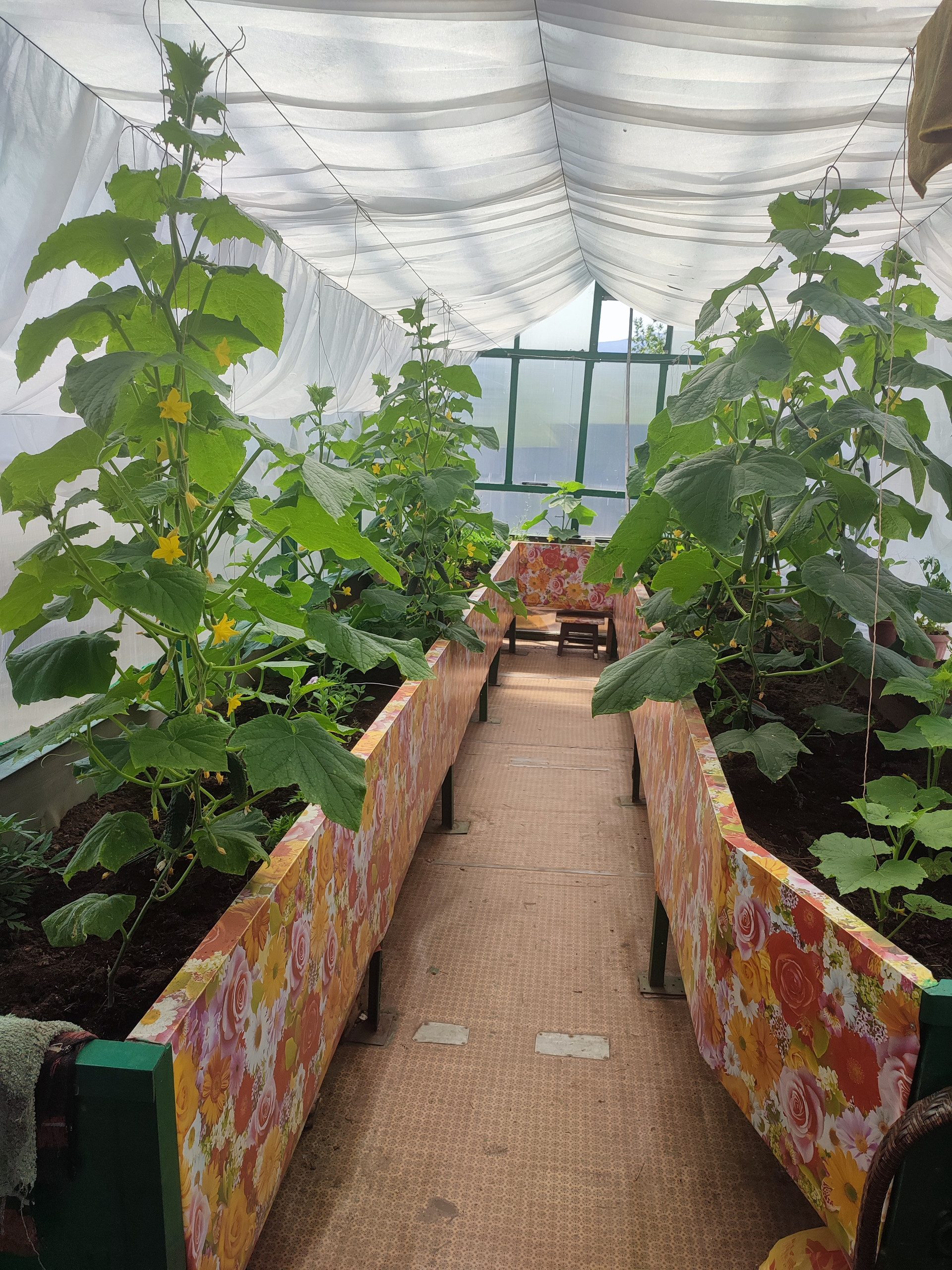 На участке 2 новые теплицы - одна отапливаемая и парничок. Все засажено, плодоносит хорошим урожаем.