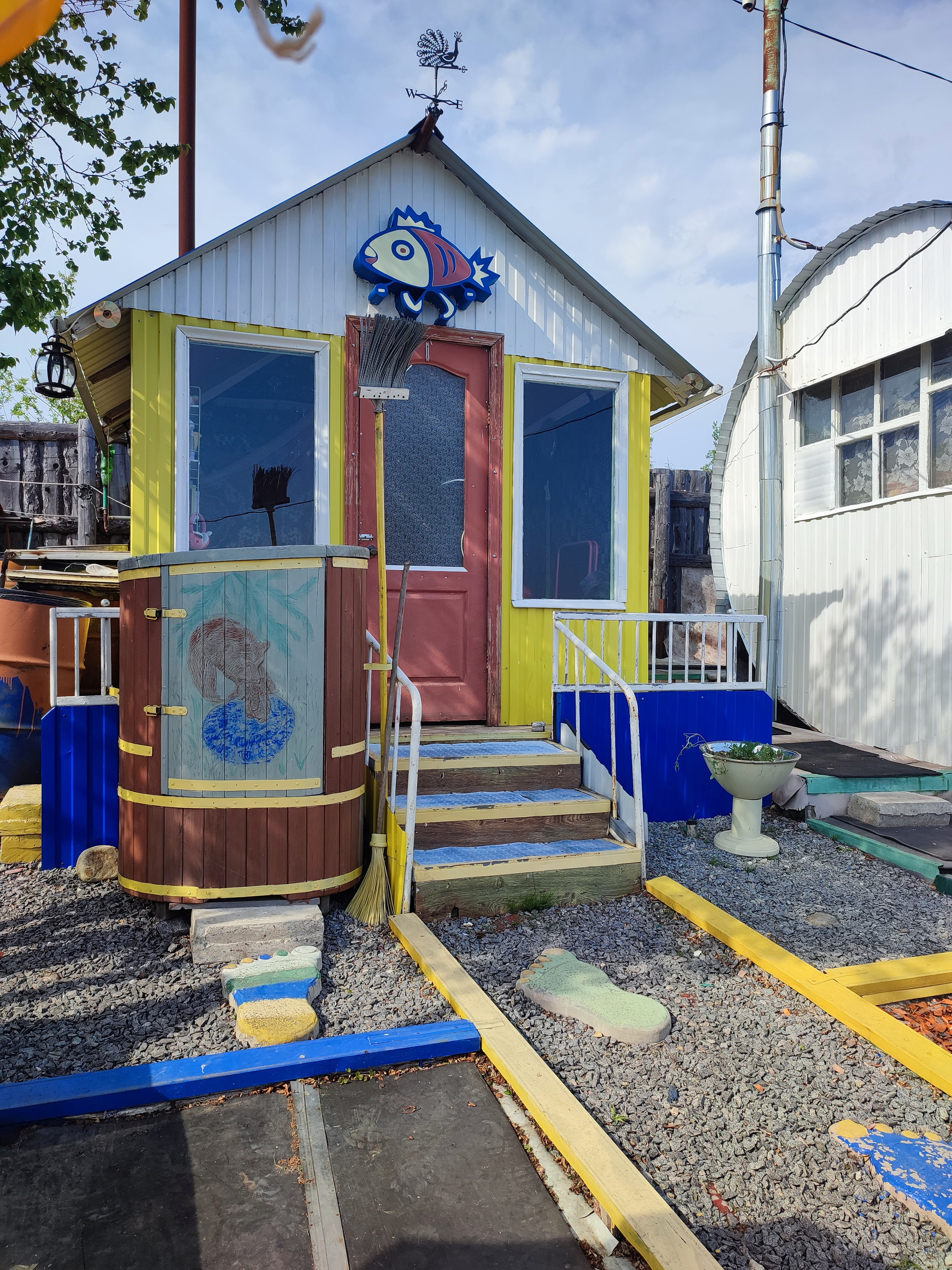 На участке имеются 5 сараев: 1 – под дачные скульптуры, 2 - дровник, 3 –«Железный Феликс» для разных железяк, 4 - сарай-мастерская, 5 – святая святых – девичий (для горшочков, дачных украшений, корзиночек, светильничков и прочих украшений, которыми увлекается хозяйка дачи).
