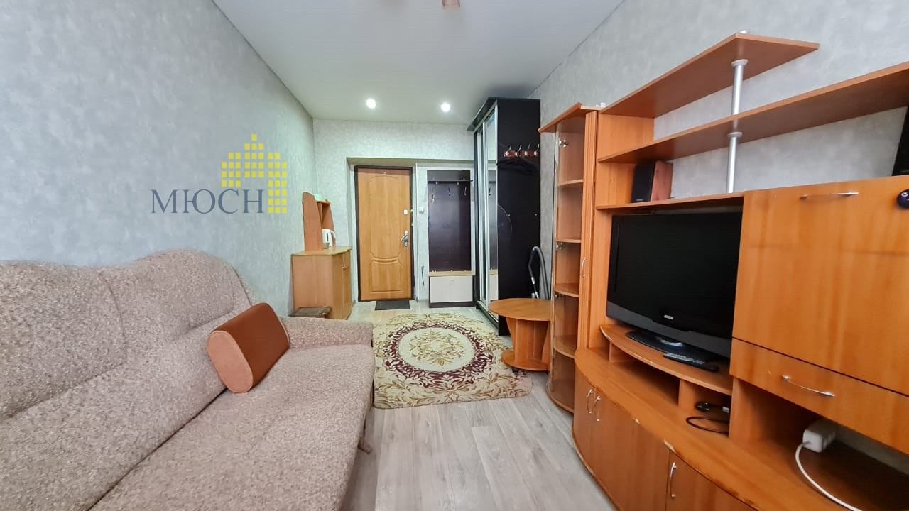 Комната продаётся с мебелью и техникой: комод, угловой диван, мебельная стенка, шкаф купе, журнальный столик, прихожая, кухонный уголок.