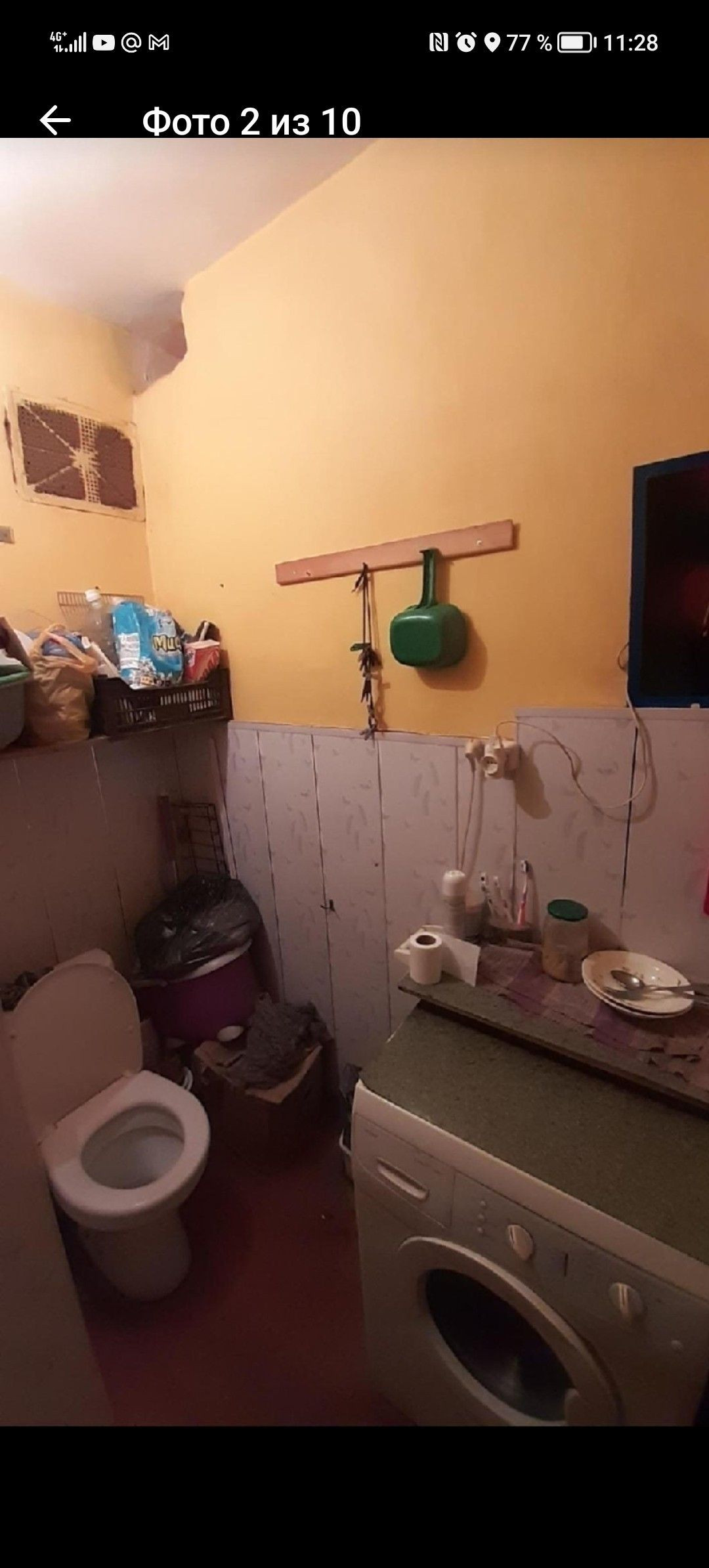 Чистая, теплая, стекло пакеты, есть небольшая кухня, стиральная машина, проживает семья