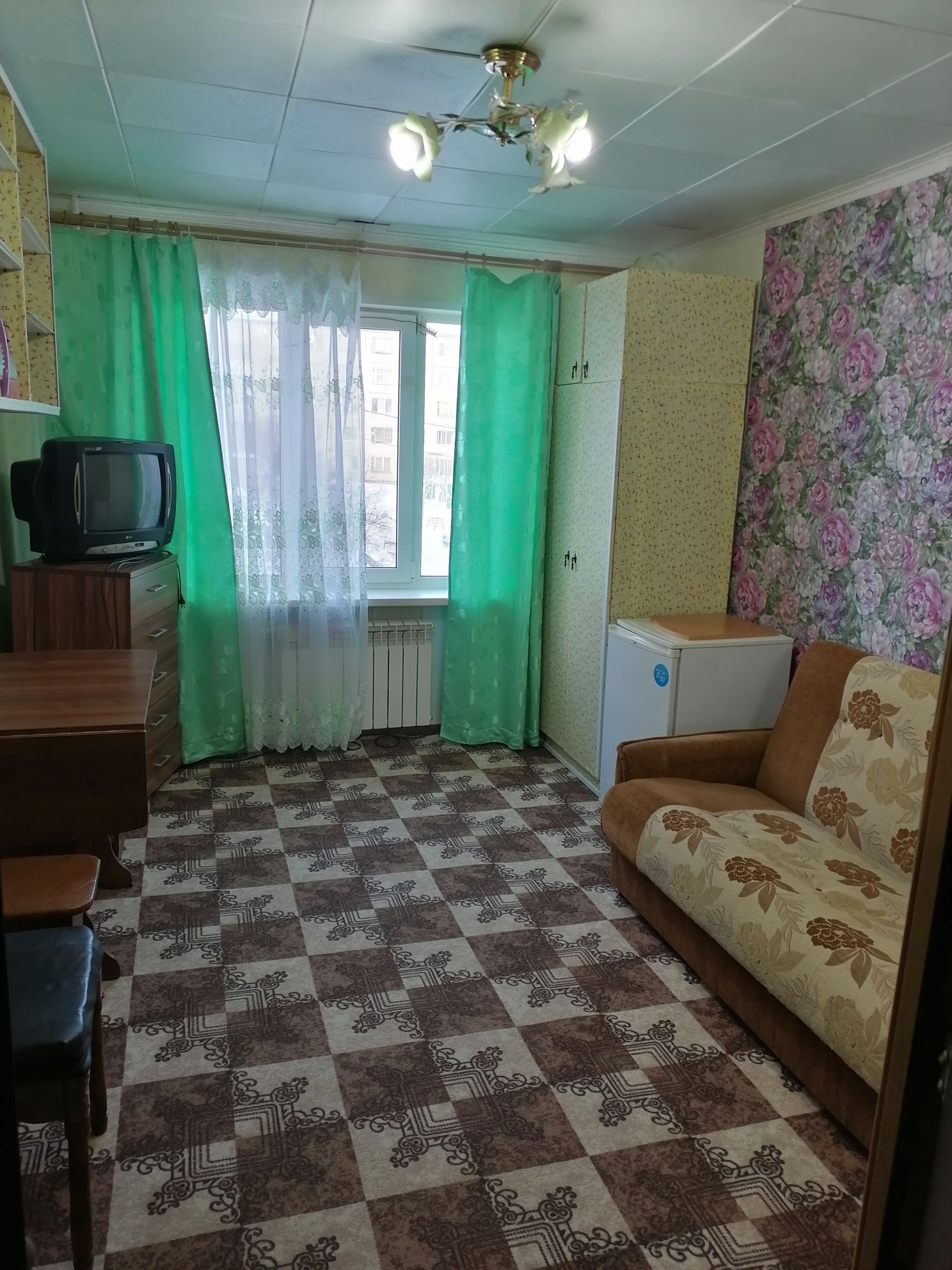 Общежитие секционного типа, 6 комнат, 4 душа, 4 туалета. На кухне имеется свой стол, холодильник, печка. Комната обустроена всем необходимым для комфортного проживания.Есть возможность сделать свой душ. Во дворе      продуктовый магазин, недалеко супермаркет, остановка.