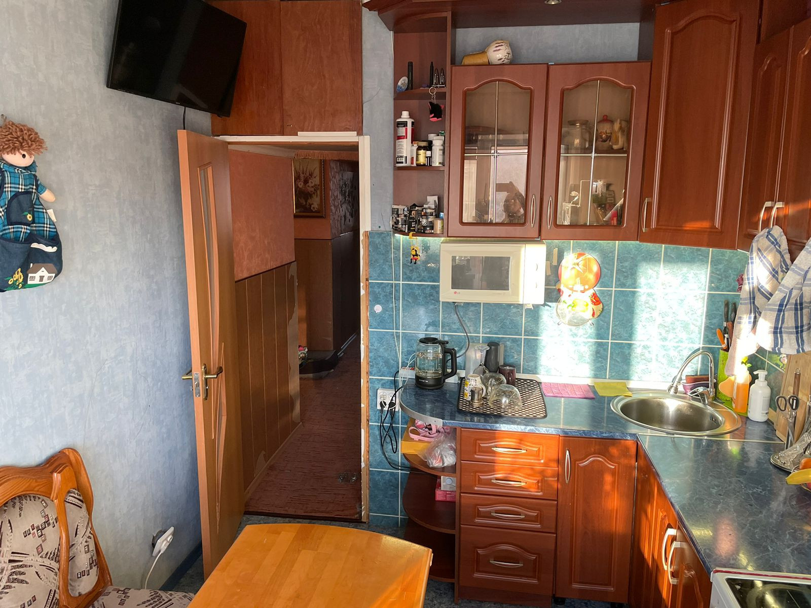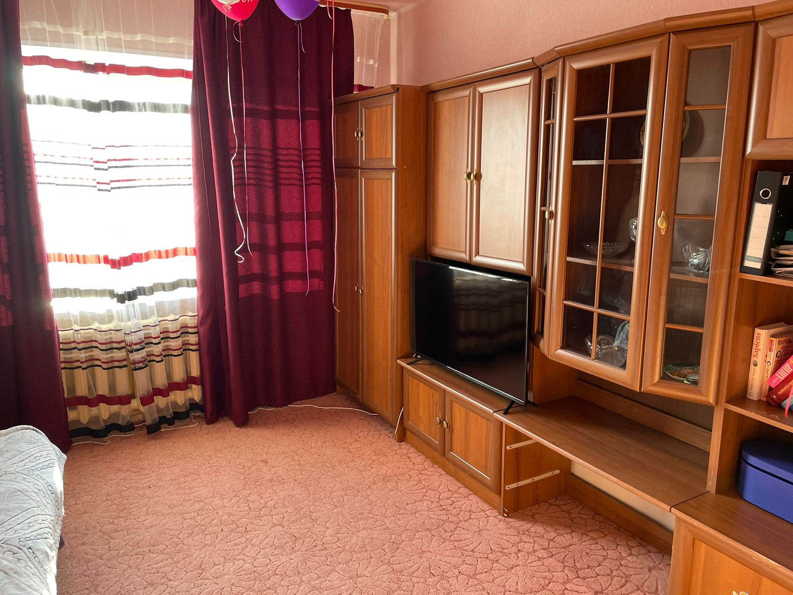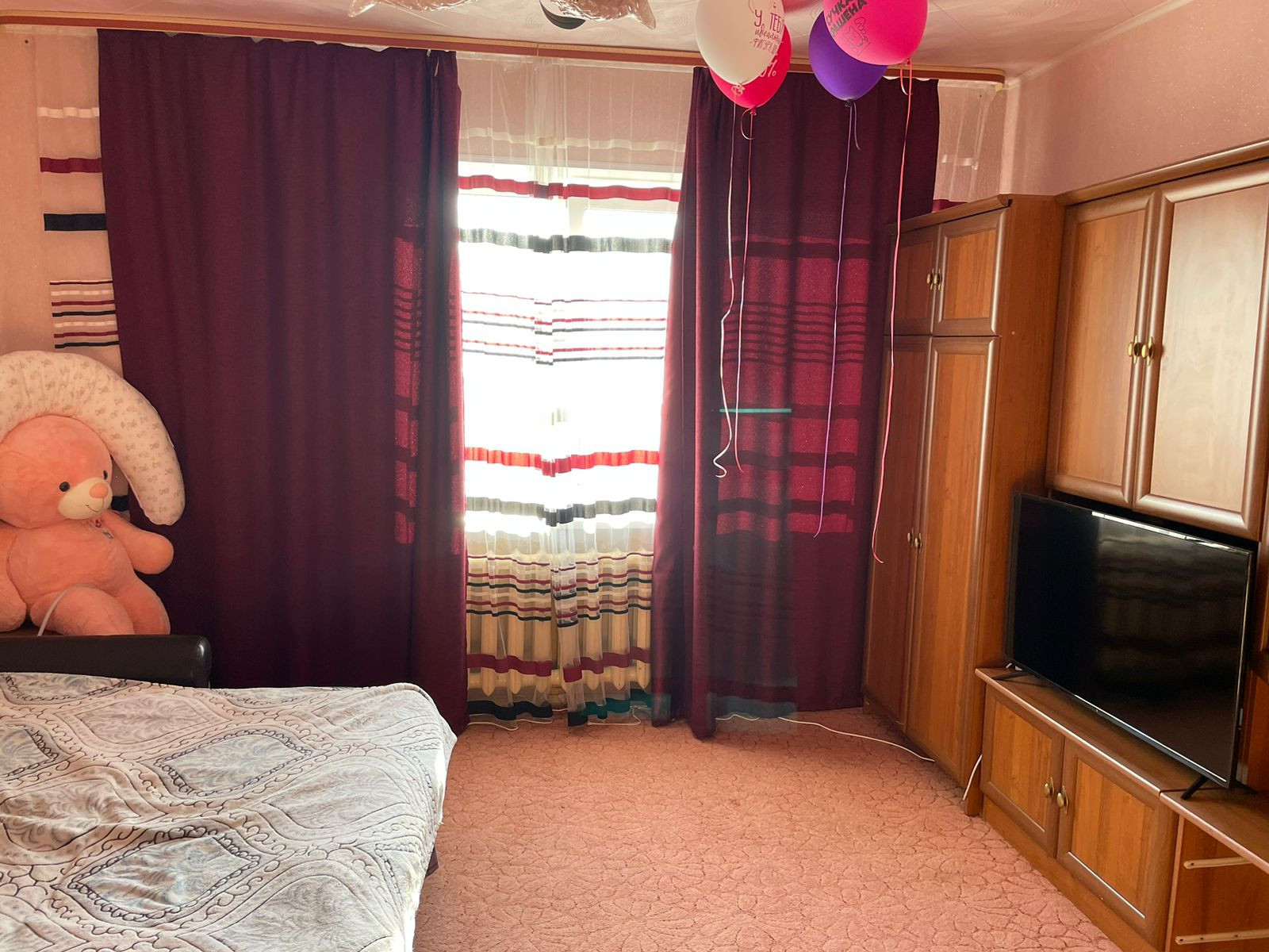 Аккуратная, просторная квартира . Частично требует ремонта. В тихом районе. Рядом садик, недалеко магазины. До центра города минут 10.