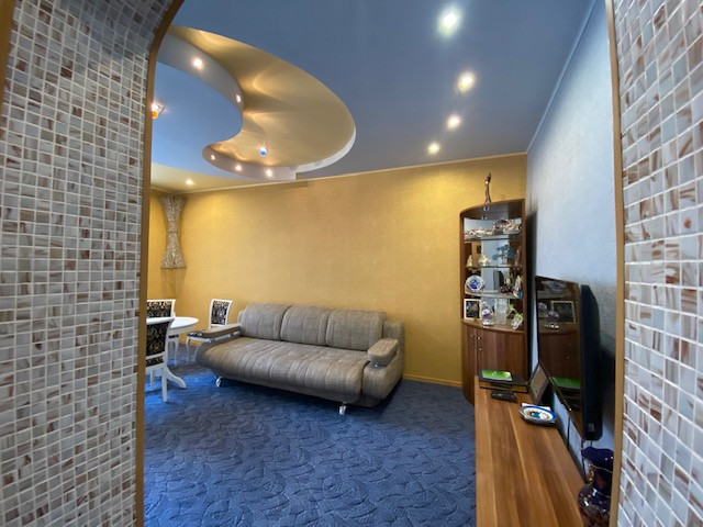 Квартира не торцевая, окна выходят на обе стороны. В квартире выполнен качественный ремонт: заменены электрика, сантехника, полы во всей квартире (на полу ламинат), дизайнерские натяжные потолки, различные виды освещения, установлены стеклопакеты , новые радиаторы, межкомнатные двери из натурального дерева. Перепланировка узаконена. Большая гардеробная. Во второй комнате оборудован рабочий кабинет.