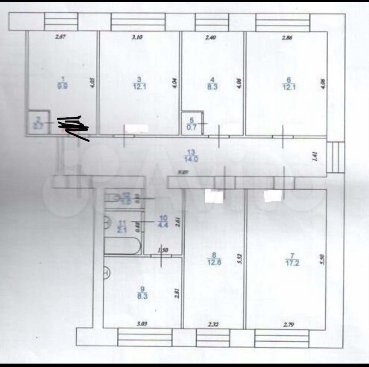 Общая площадь 103, 6 м.к.в, жилая 79, 2 м.кв.,потолки 2,75