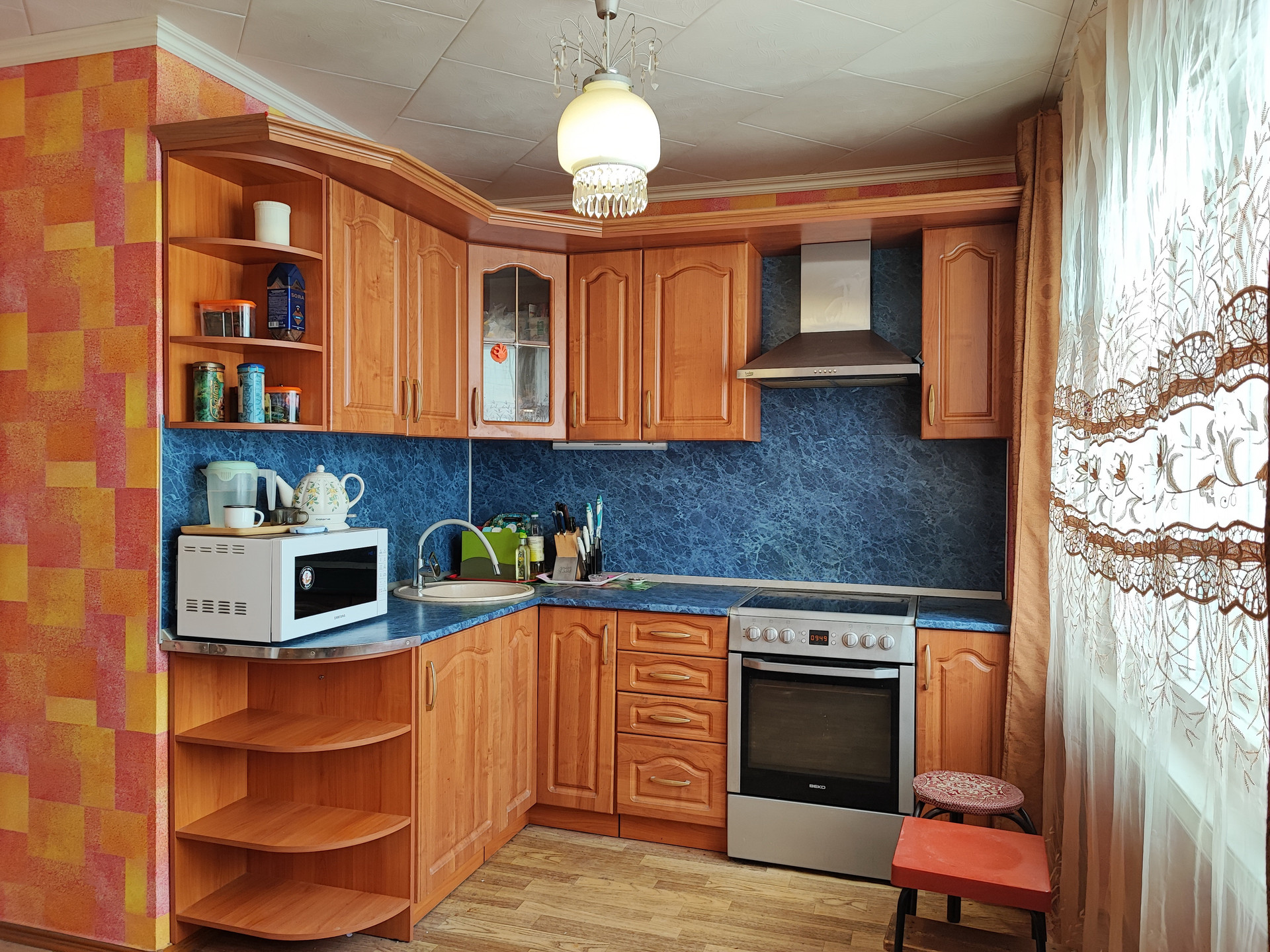 Блочный дом, хорошая звукоизоляция, очень теплая, уютная, окна на две стороны, квартира солнечная, светлая .Жилое состояние, встроенная кухня, новая сантехника, установлены счетчики, покрытие пола линолеум, ламинат, санузел раздельный, установлены счетчики на воду, кладовка . Бытовая техника и мебель по договоренности..