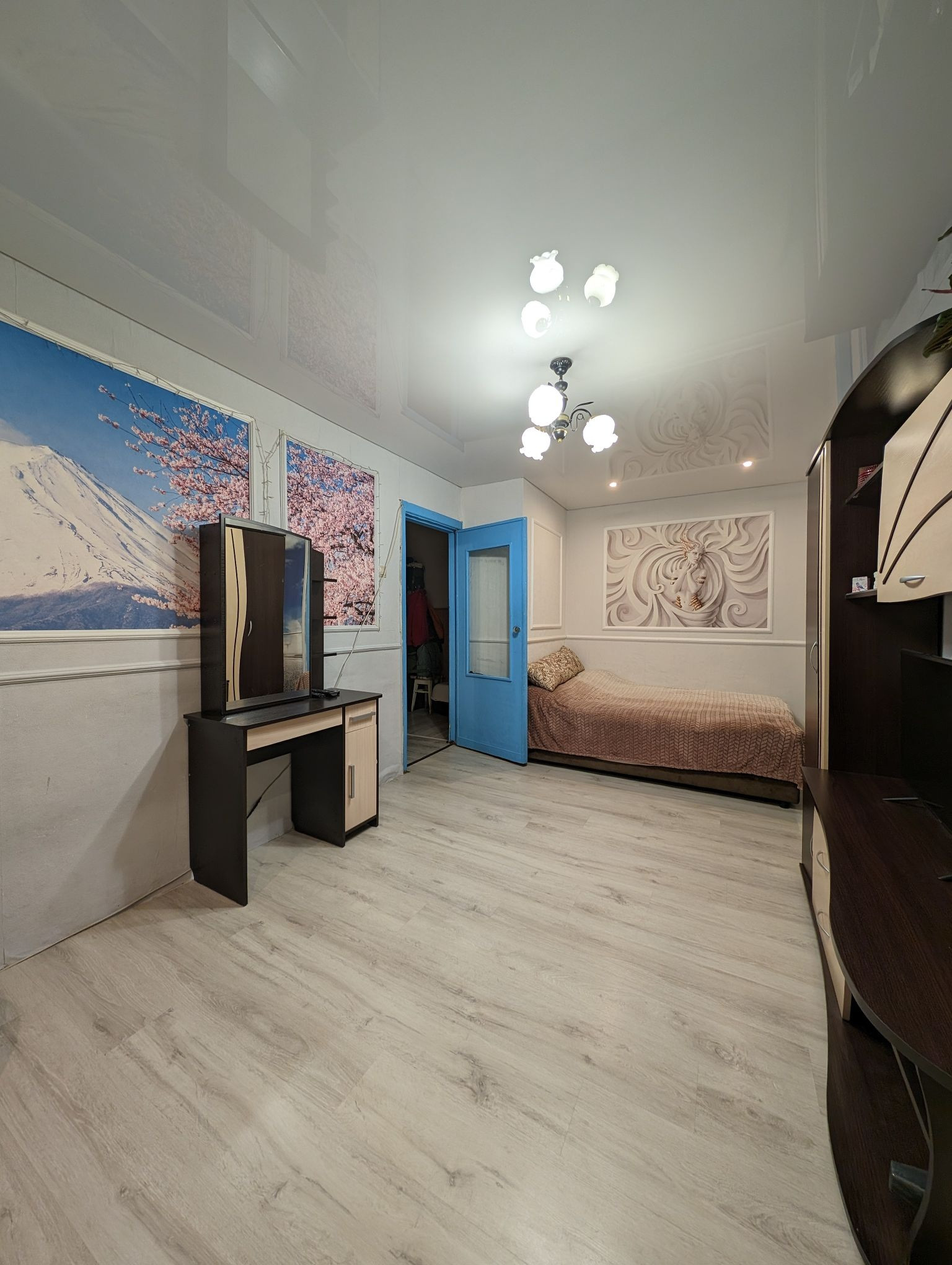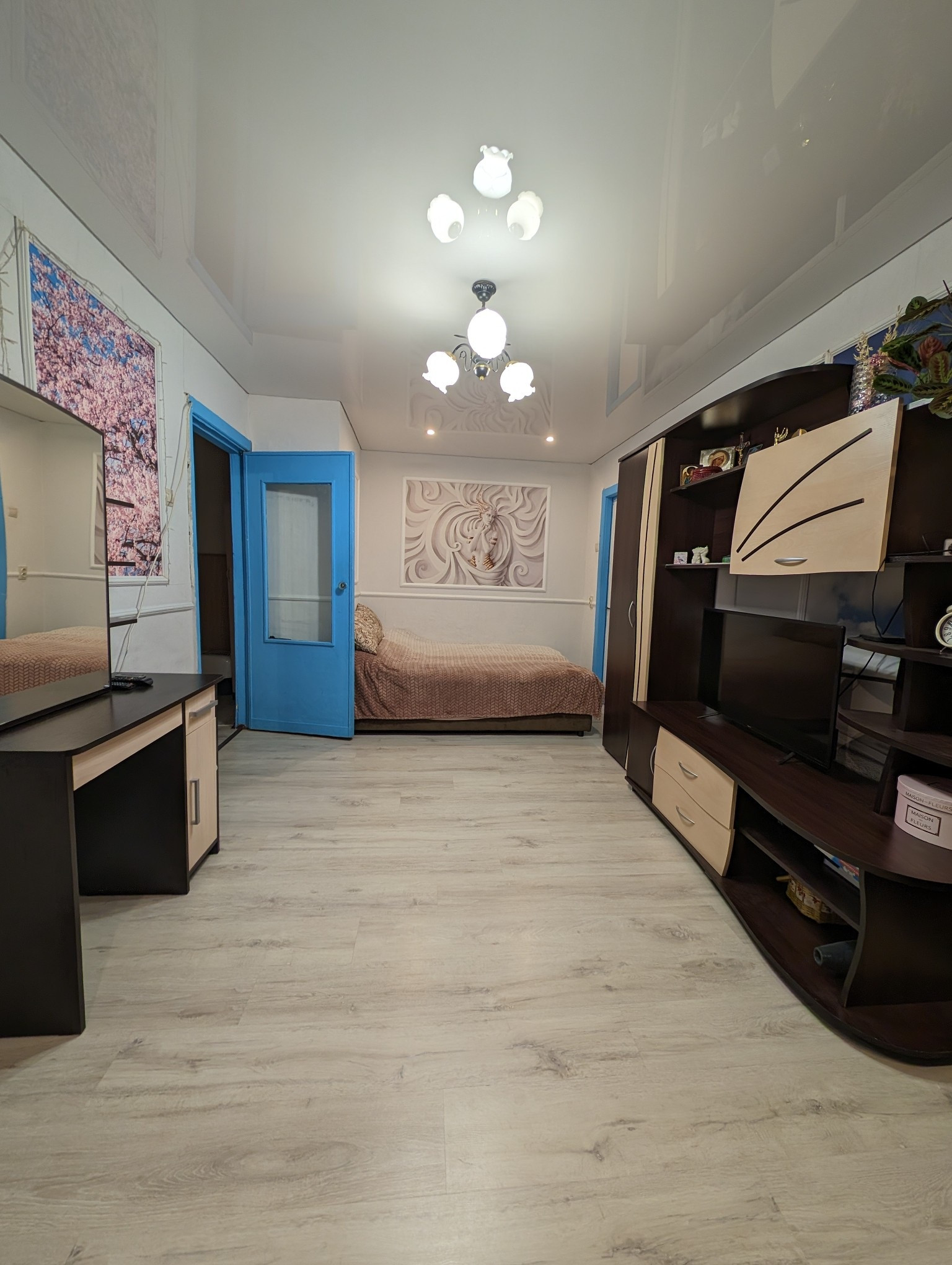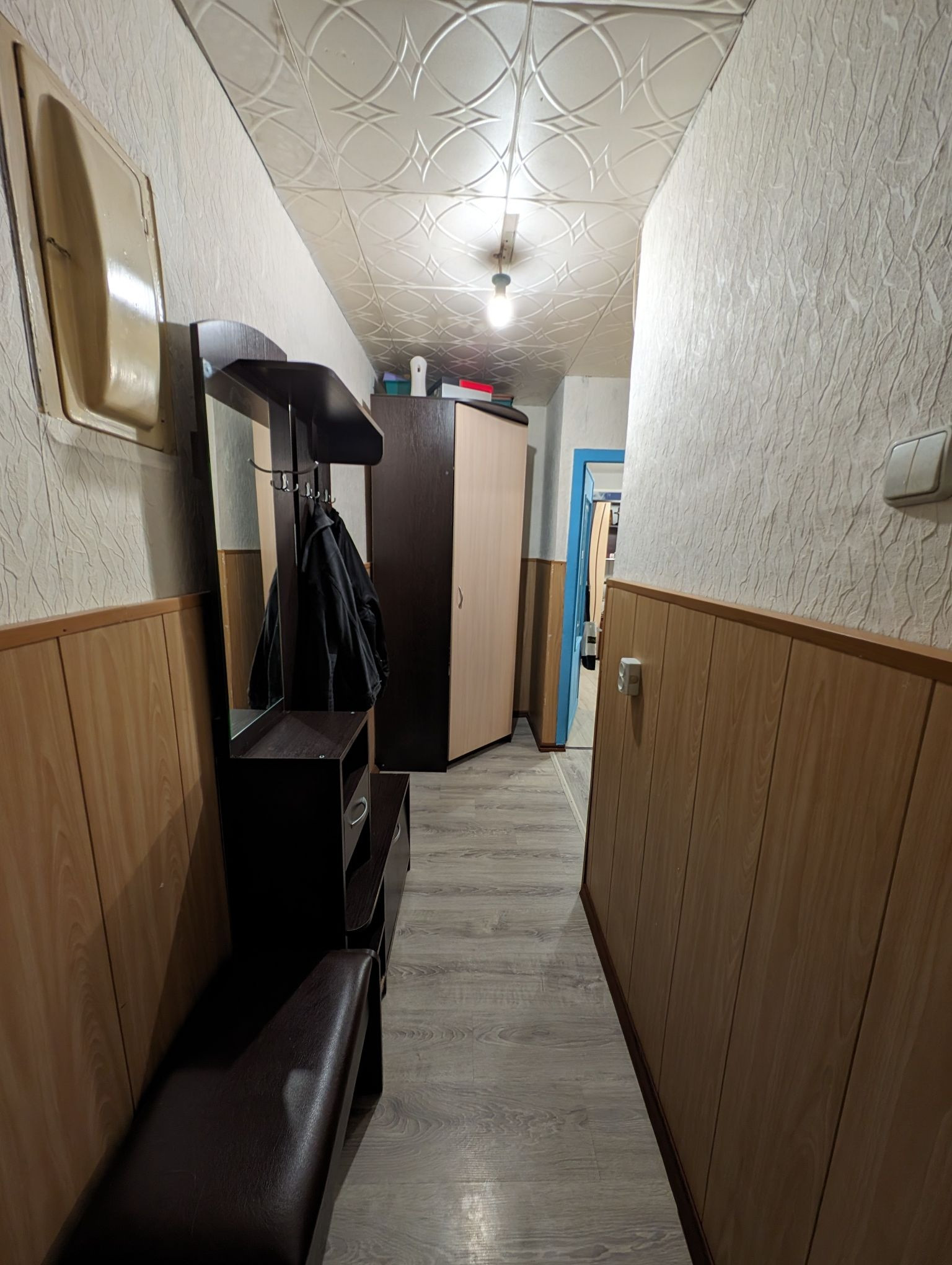 Квартира теплая, светлая, чистая с косметическим ремонтом. Установлены стеклопакеты, новая входная дверь. Сантехника полностью заменена в августе 2024 г., счётчики воды установлены. Радиаторы чугун. Стены оклеены обоями. На полу в зале, кухне и прихожей ламинат, в другой комнате ковровое покрытие. В ванной комнате кафель. Потолок в зале и комнате натяжной, в коридоре и кухне стиропоровые панели, в ванной пластиковые панели.