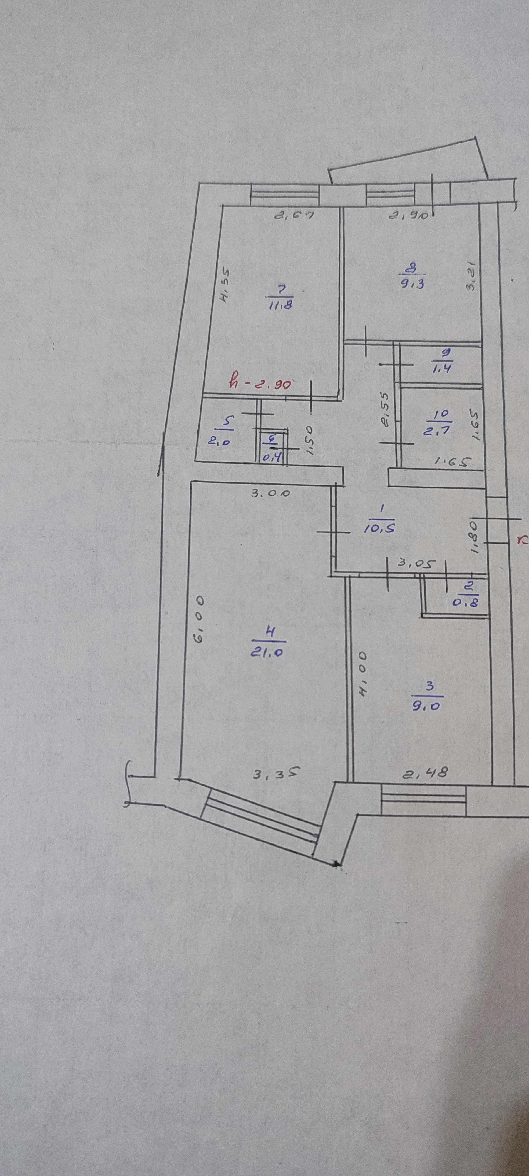 Высота потолков 2.9 м
