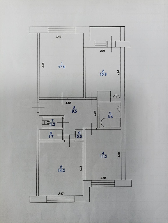 Жилая площадь 43.3 м2