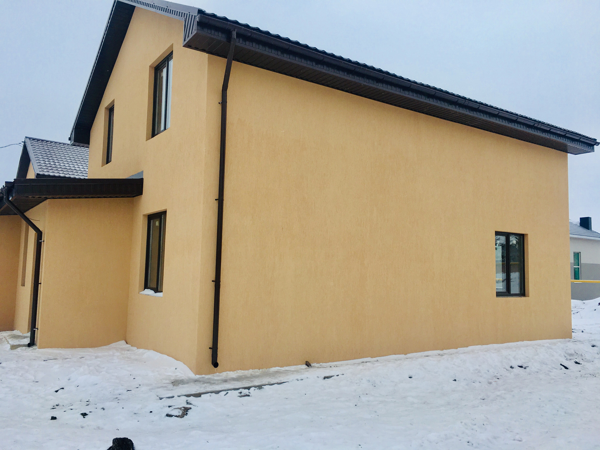 Все коммуникации центральные (газ, электричество 380V, вода, канализация). Фундамент – бетонный ростверк 400/500 на сваях, h=2500, шаг 2000 мм, стены шлакоблок (400 мм) + утеплитель фасадный (100 мм). Наружная отделка - декоративная штукатурка «Ceresit». Крыша – металлочерепица. Окна Rehau Grazio, 5-ти камерный профиль 70 мм, энергосберегающий тройной стеклопакет. Дом продается без отделки. Вы не переплачиваете за чей-то ремонт и сможете сделать его по своему вкусу. Возможно доведение до пред чистовой отделки от застройщика, а также выполнение ремонта под ключ (подробнее по телефону или в сообщениях).