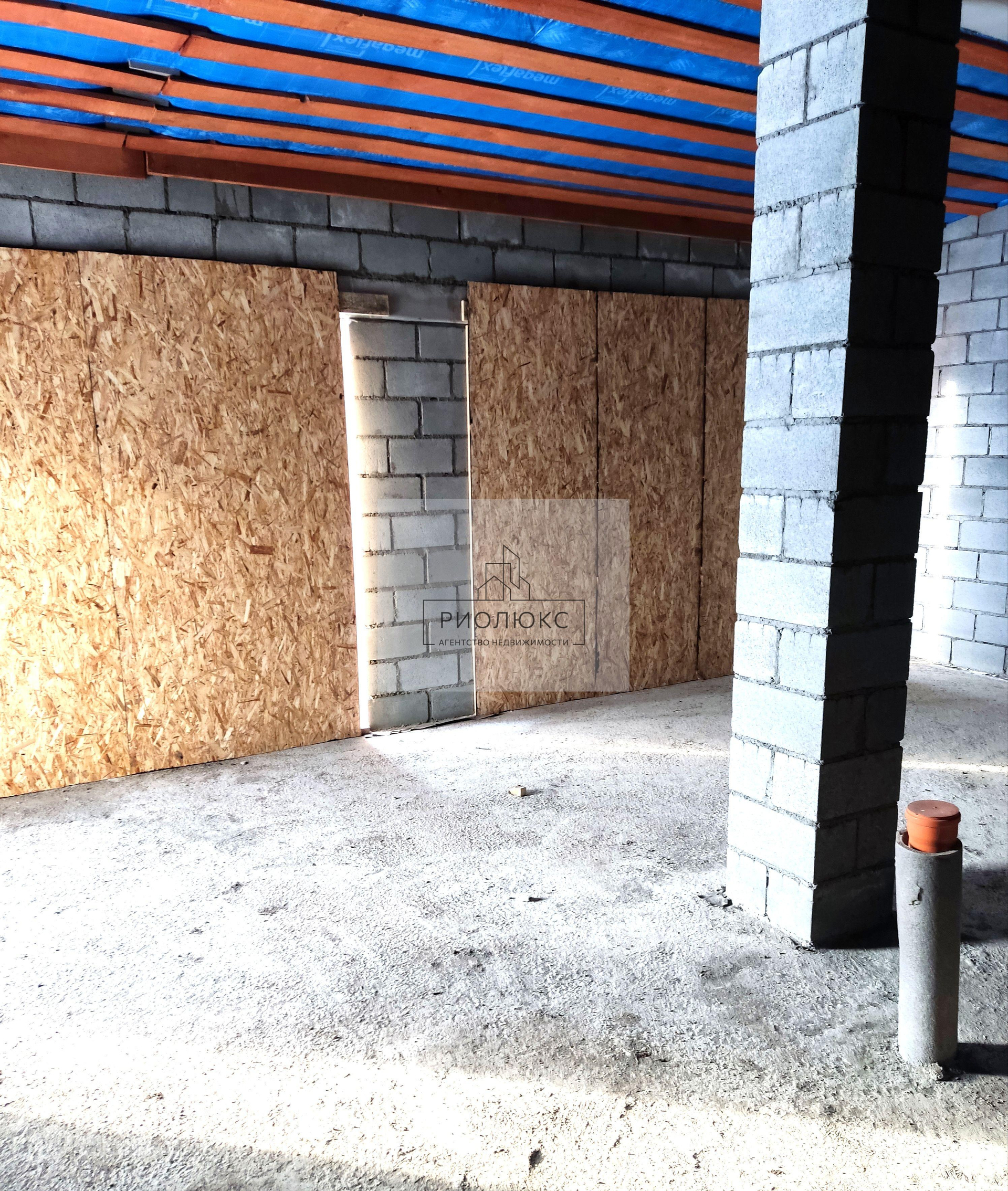 фундамент монолитная плита + сваи  на 3 метра в глубину, на шаг 2 метра,внешняя стена 500 мм, стены - шлакоблок трест маглин,  внутренняя стена -  200 мм,  центральные коммуникации,(газ,электричество, вода)  кирпичная кладка под кровлю,крыша - битумная основа с базальтовой кромкой,2 слойная кровля на 25 лет гарантия.