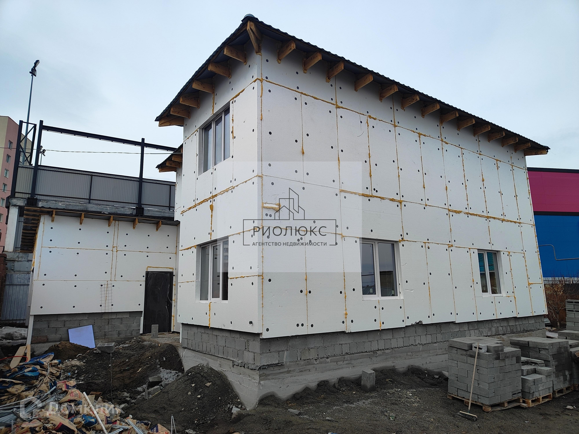 Продаётся новый двухэтажный дом площадью 126 кв.м с просторным гаражом на два автомобиля площадью 46 кв.м на участке 5 соток в посёлке "Старая Магнитка" по адресу ул. Свободы, д. 48. Земля в собственности! Дом построен из высококачественных материалов: шлакоблок на ленточном фундаменте, фасад утеплён пенопластом толщиной 100 мм и отделан "Короедом". Крыша выполнена в четырёхскатной форме с использованием металлочерепицы. Внутри дома имеются железобетонные межэтажные перекрытия.