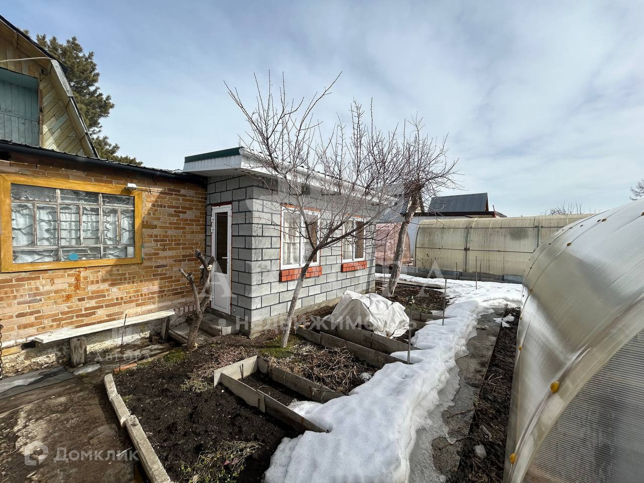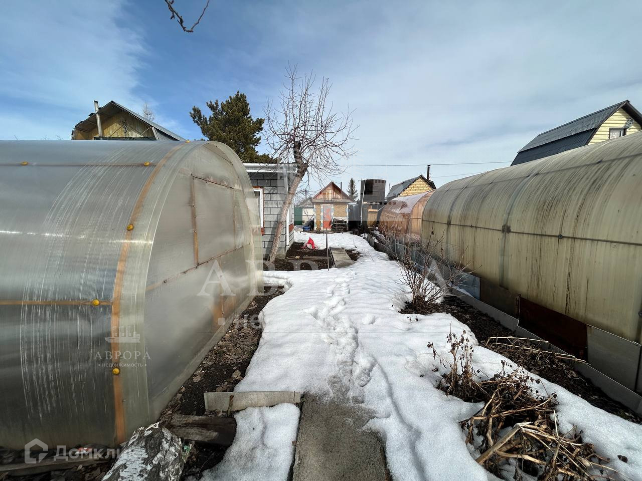 Участок ухожен, не запущен. Есть несколько теплиц (остеклённых и из поликарбоната), грядки, а так же различные плодоносящие посадки.