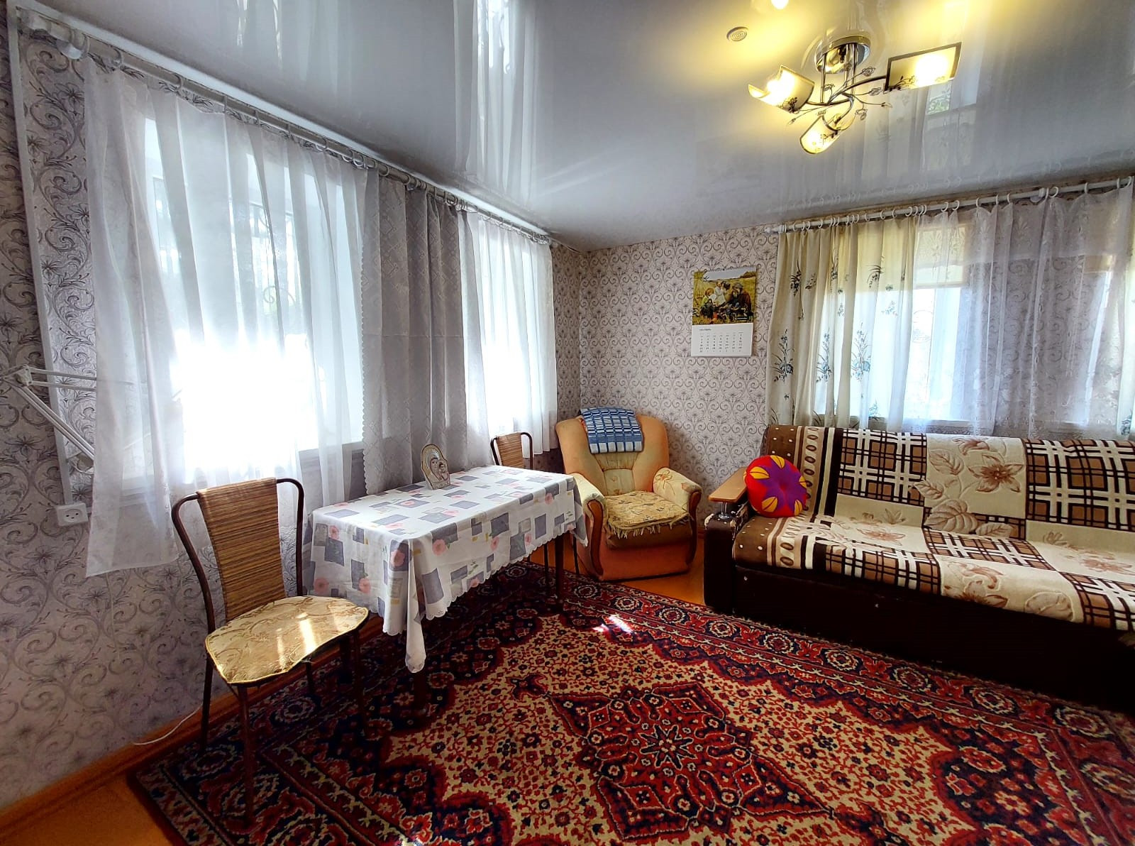 В доме сделана качественная проводка электричества,натяжные потолки,пластиковые окна с решетками.
