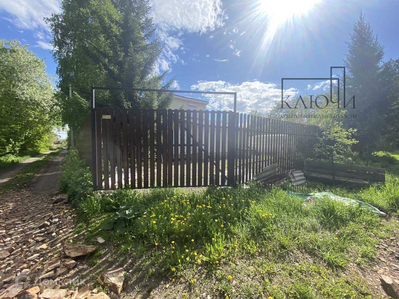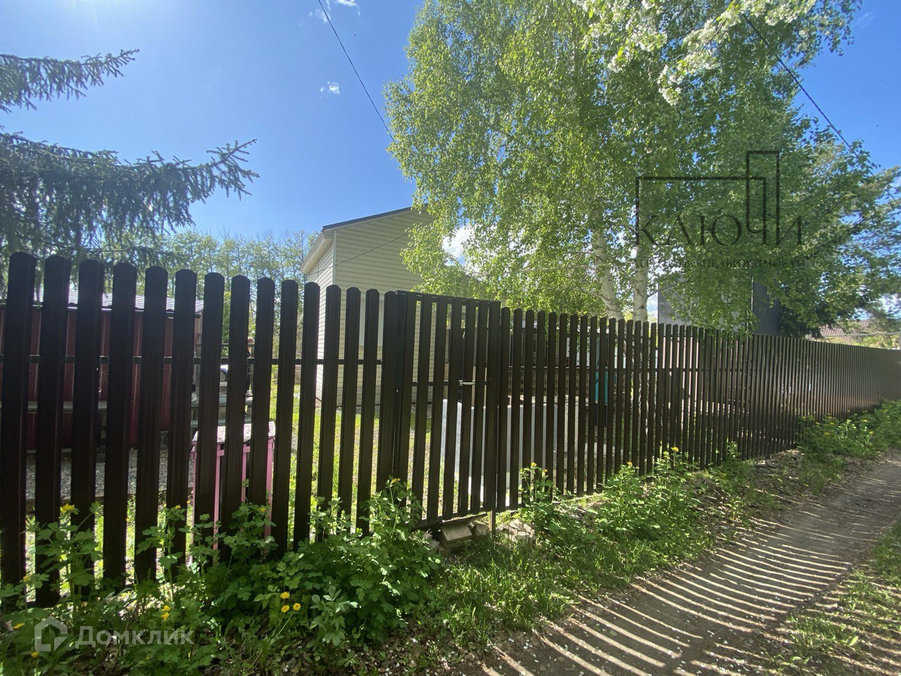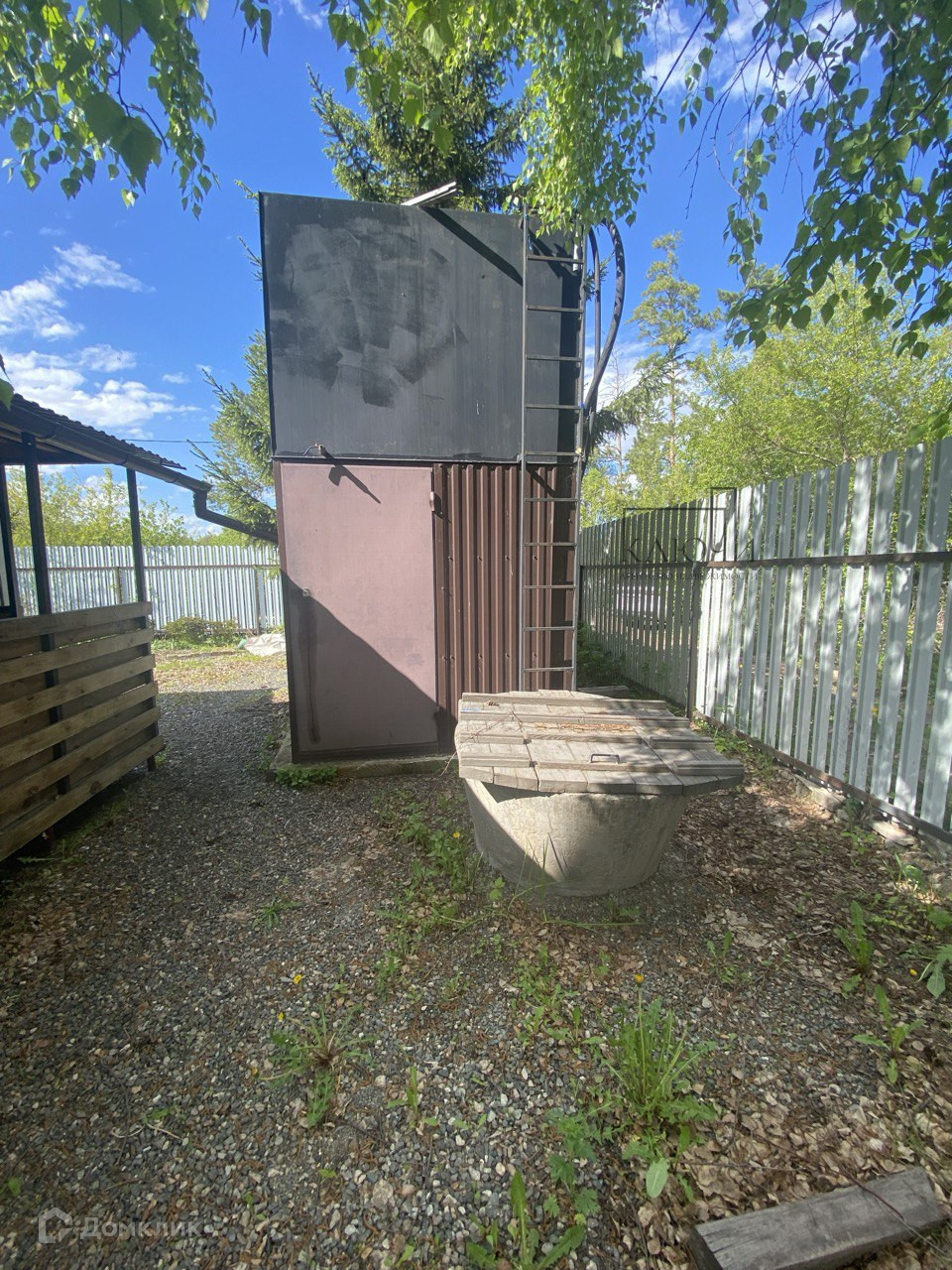 Территория огорожена евроштакетником с 2х сторон, между соседями рабица. Дорожки отсыпаны гравием, оборудована зона для костра, 2 металлических короба под компост, 12 каркасных грядок из дерева.