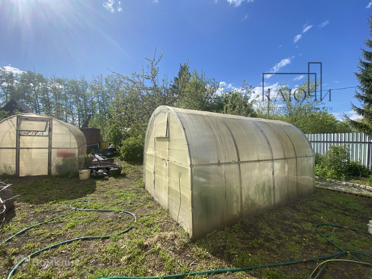2 теплицы 3х4, бак для полива 5 кубов с хоз. блоком, колодец с технической водой.