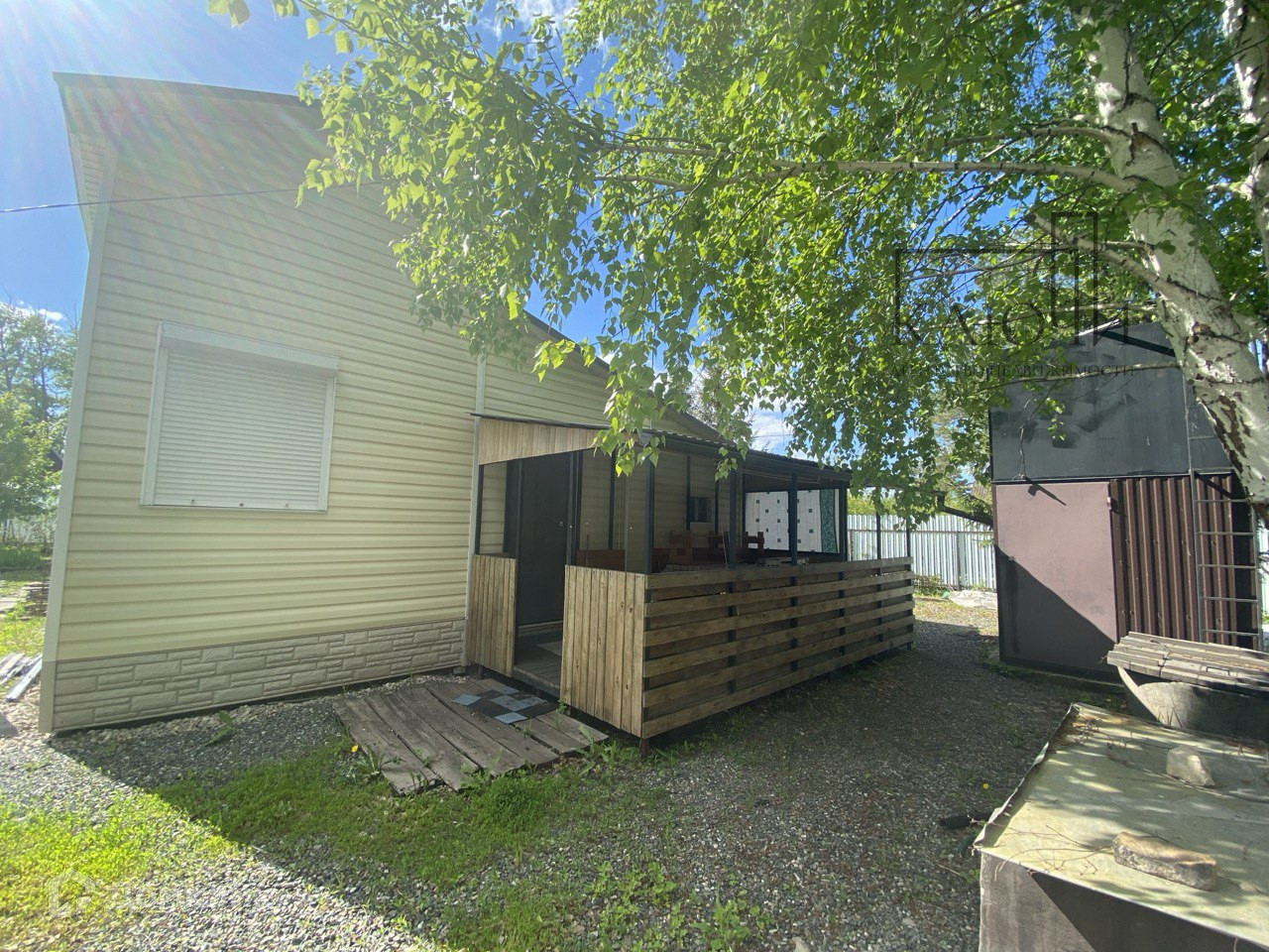 -открытая веранда из проф.трубы, обшита деревом