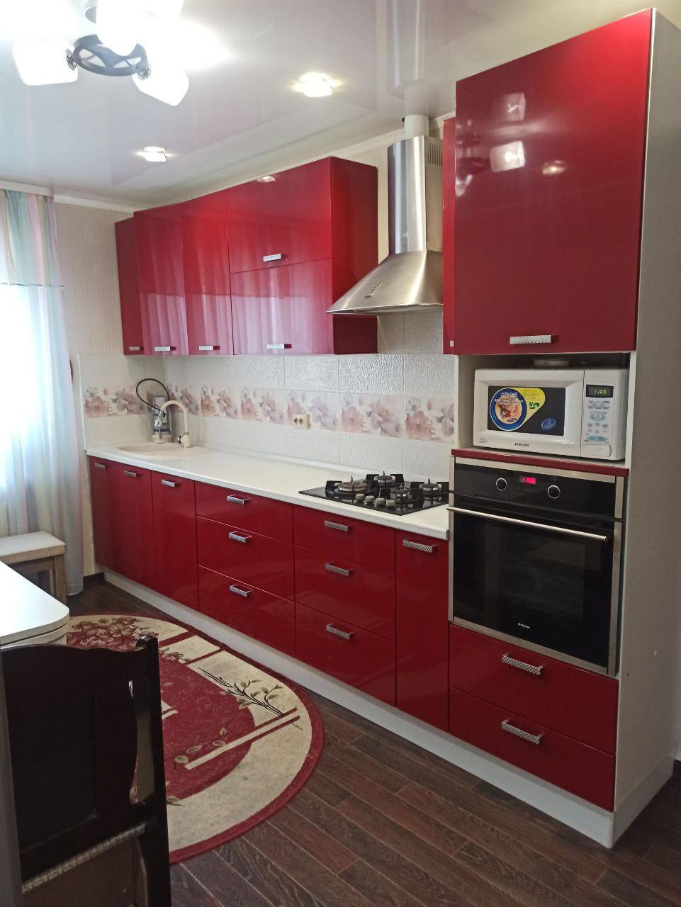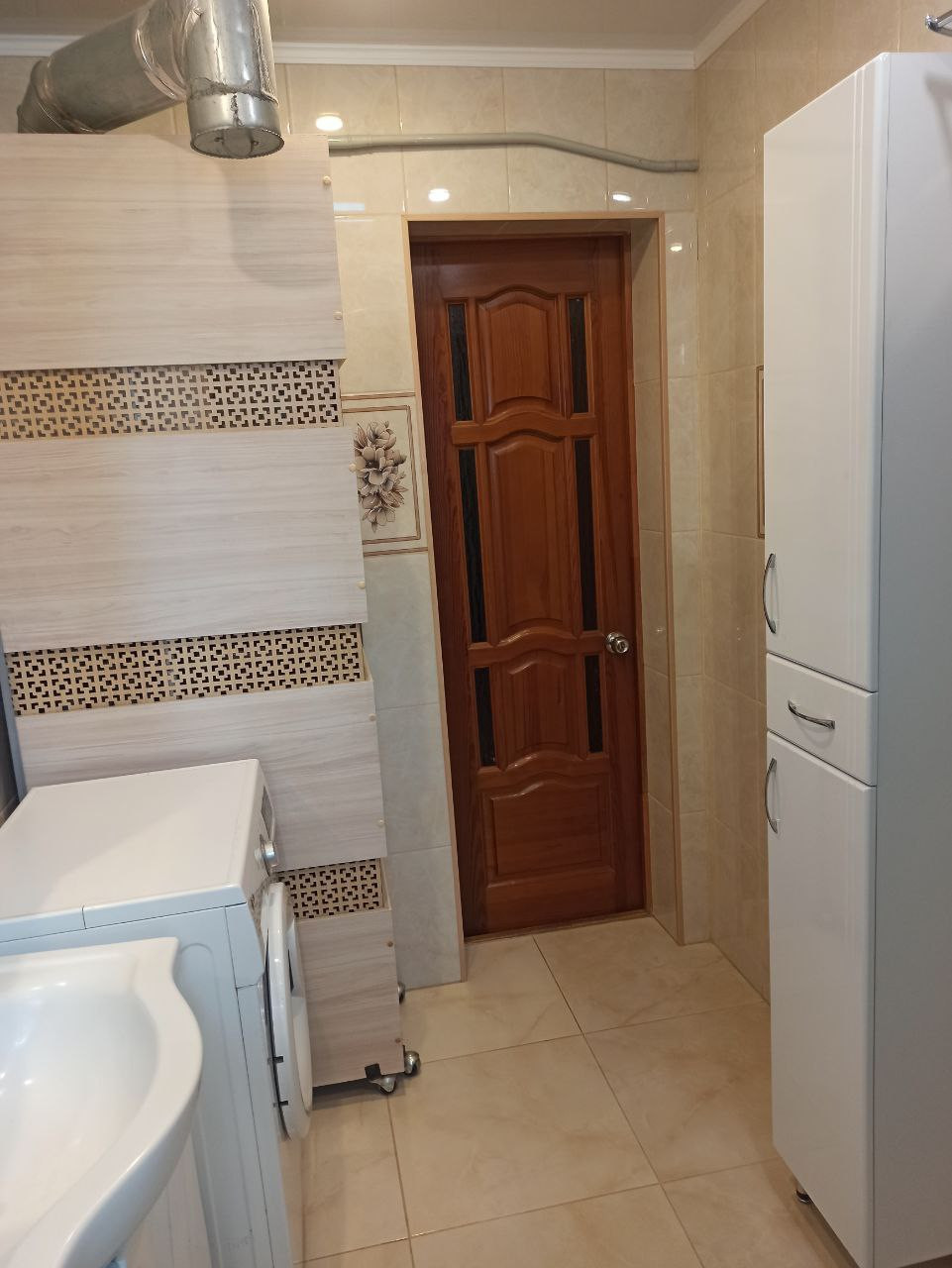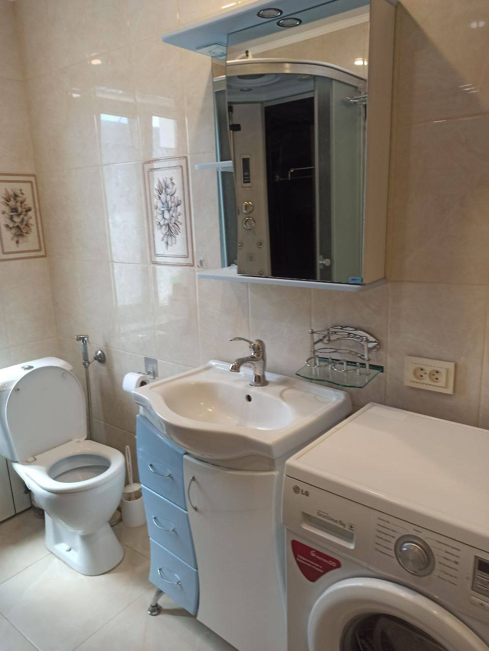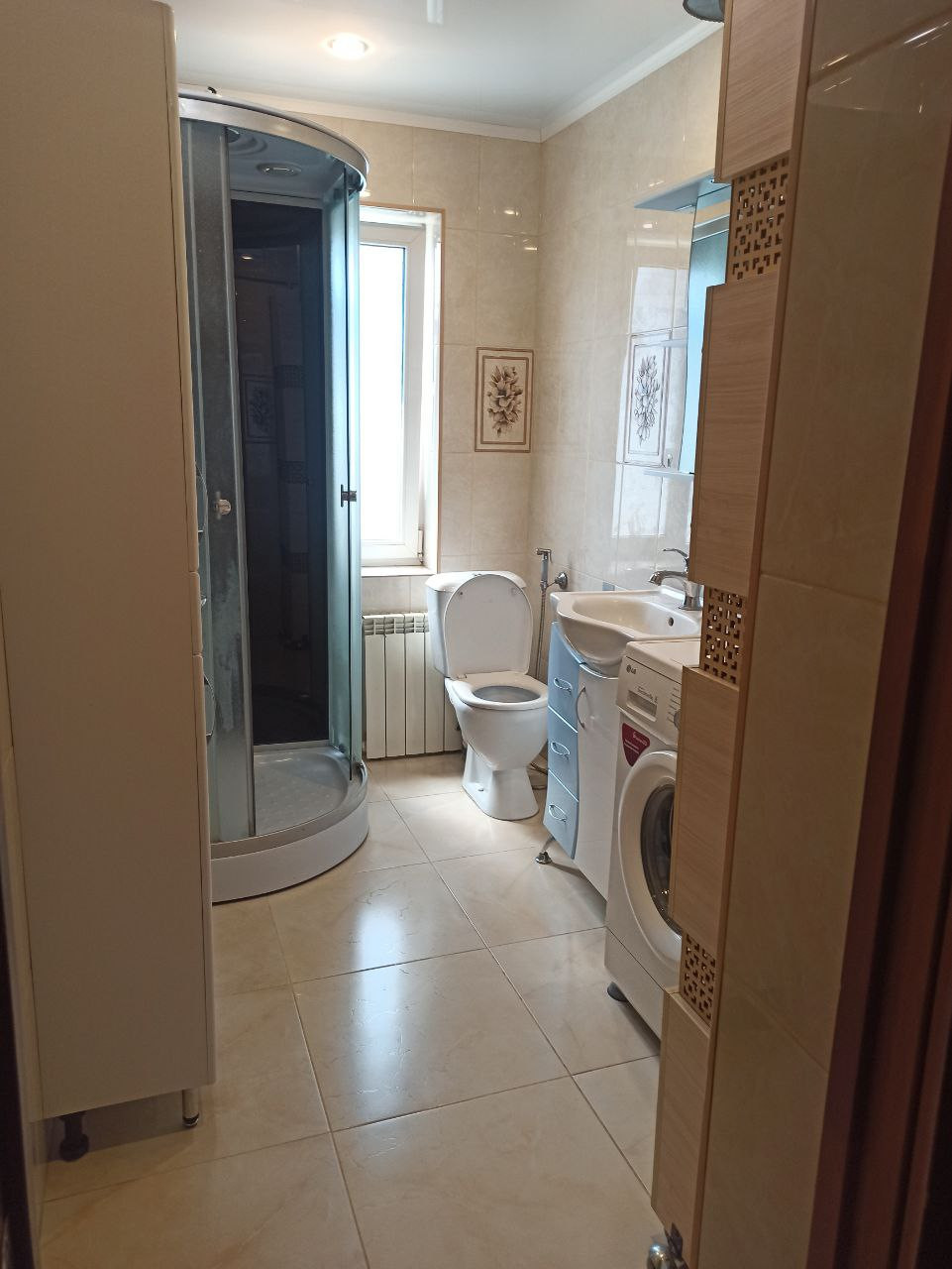 Ванная комната оснащена душевой кабиной, туалетом, гигиеническим душем и умывальником. Просторная кухня оборудована встраиваемой бытовой техникой: посудомоечная машина, варочная поверхность и духовой шкаф, мойка из искусственного камня, а также на кухне имеется подпол для хранения.