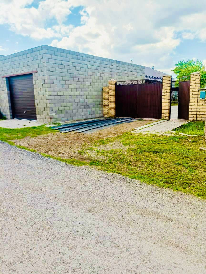 На участке расположен большой капитальный гараж 5х10 из шлакоблока под грузовую машину. В гараже есть смотровая яма, двое въездных ворот -  одни автоматические роллетные 3х2,7  с улицы и металлические 3х2 со двора.