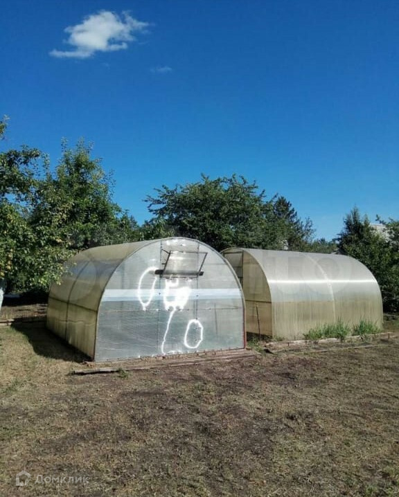 Имеется две теплицы, а так же посадки: две яблони, абрикосовое дерево и вишня.