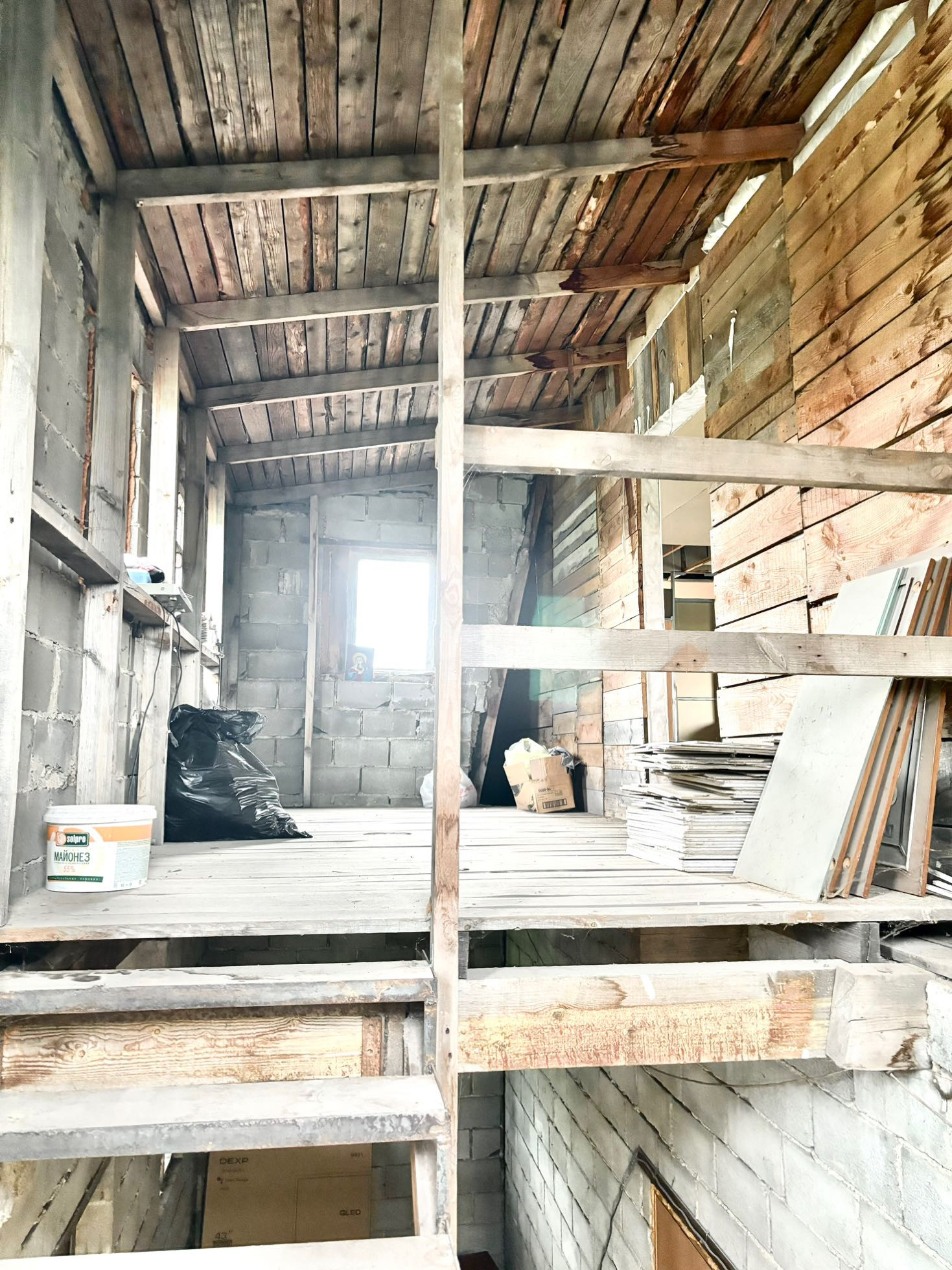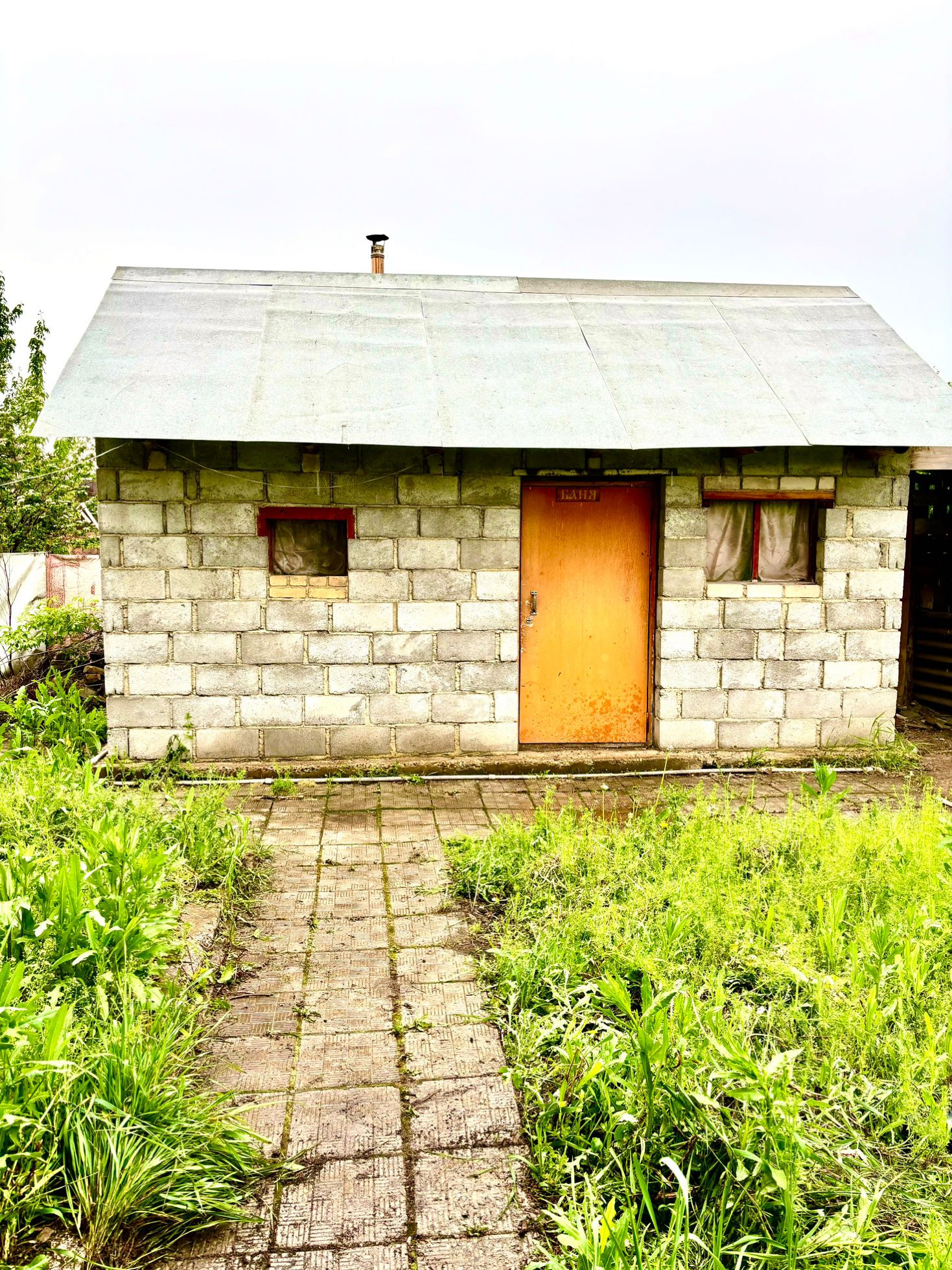 Дом 2-х этажный из шлакоблока и кирпича, крыша из профлиста утеплена мин. ватой, тёплые полы, скважина с насосом, выгребная яма, новая электропроводка. Водогрейка