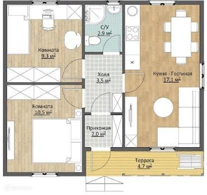 Общая площадь 60 м2