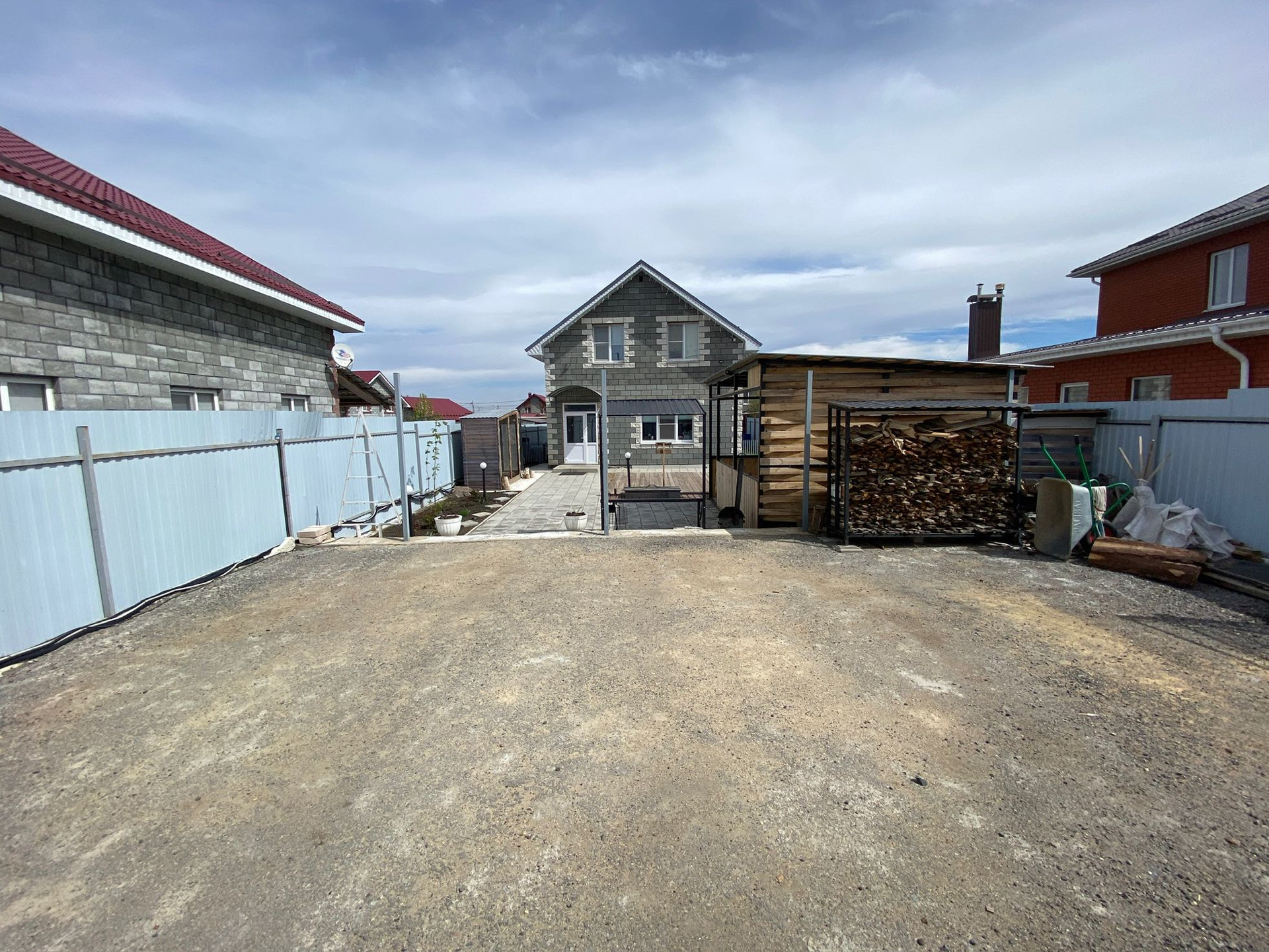 дорога от проковочный мест уложена в тротуарной плитке, как и вдоль дома до заднего участка