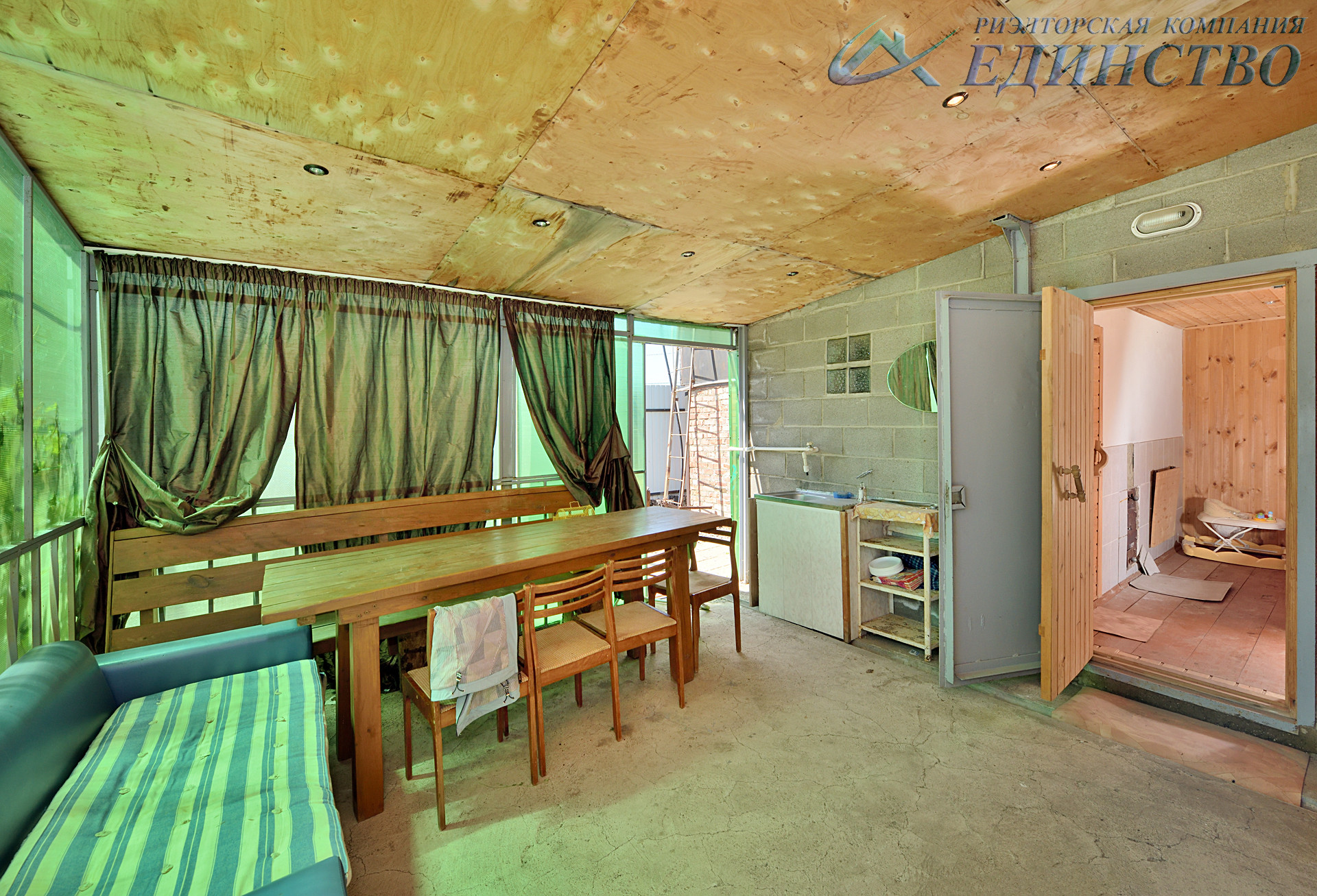 Крыша покрыта прифнастилом с утеплителем и гидроизоляцией, не подтекает.
