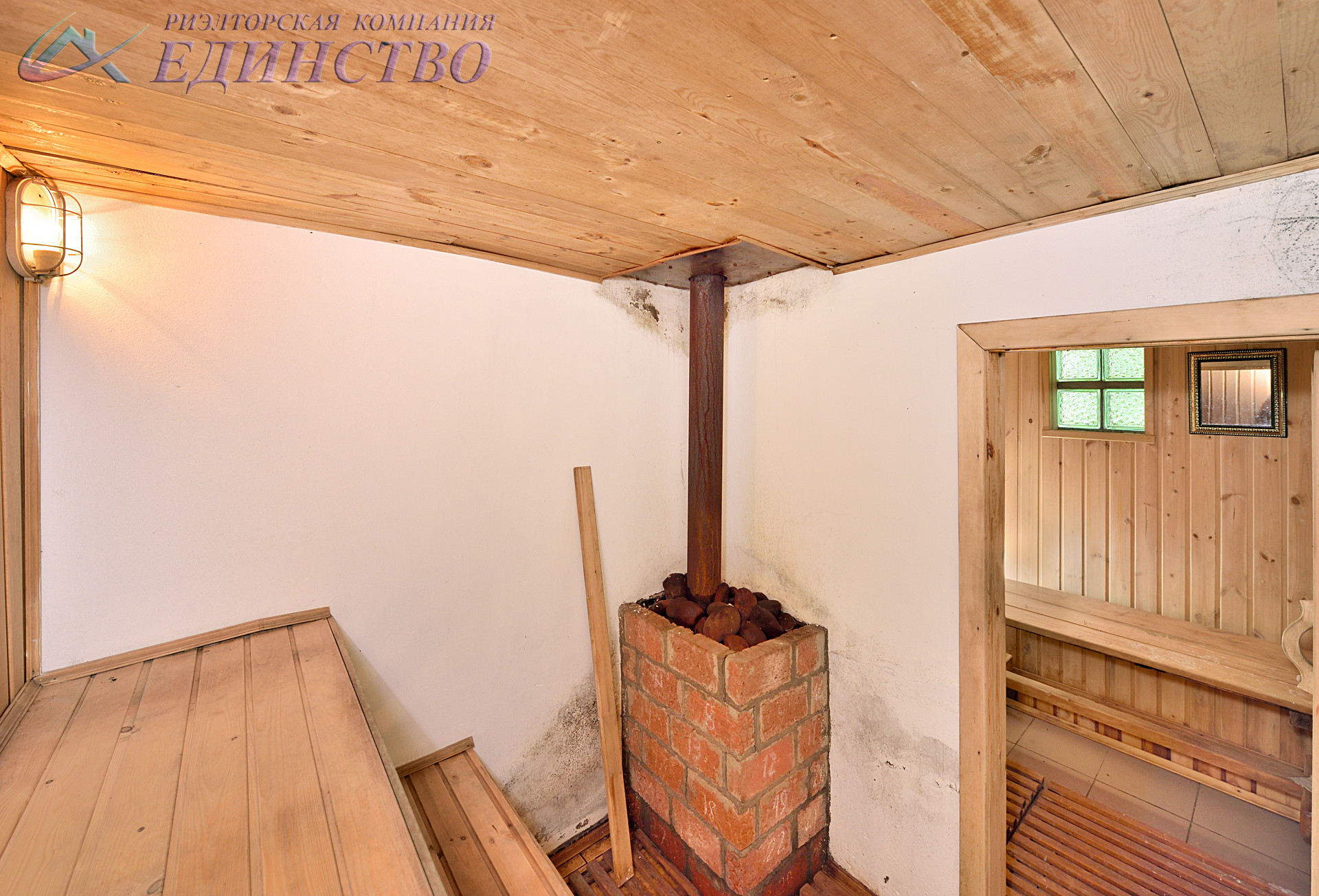 На первом этаже комната, кухня, прихожая, рабочая печь.