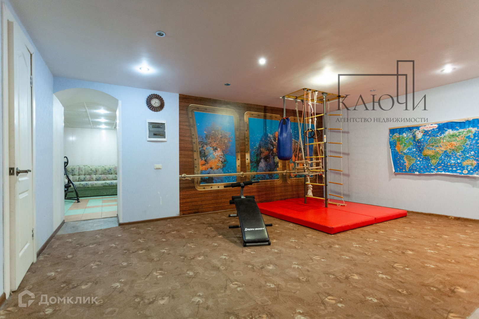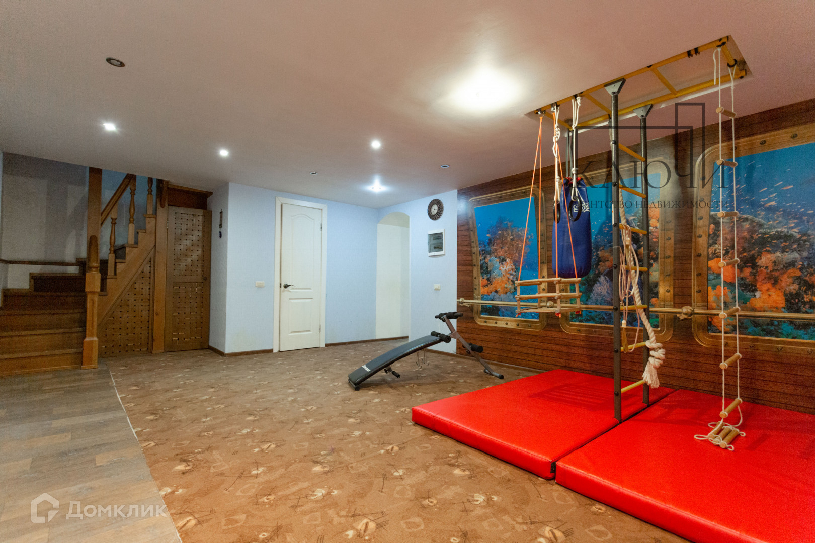 · просторная игровая с шведской стенкой, турником, качелями, кольцами, теннисным столом и другими тренажерами