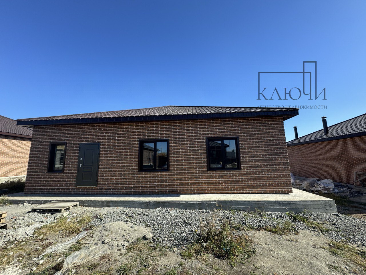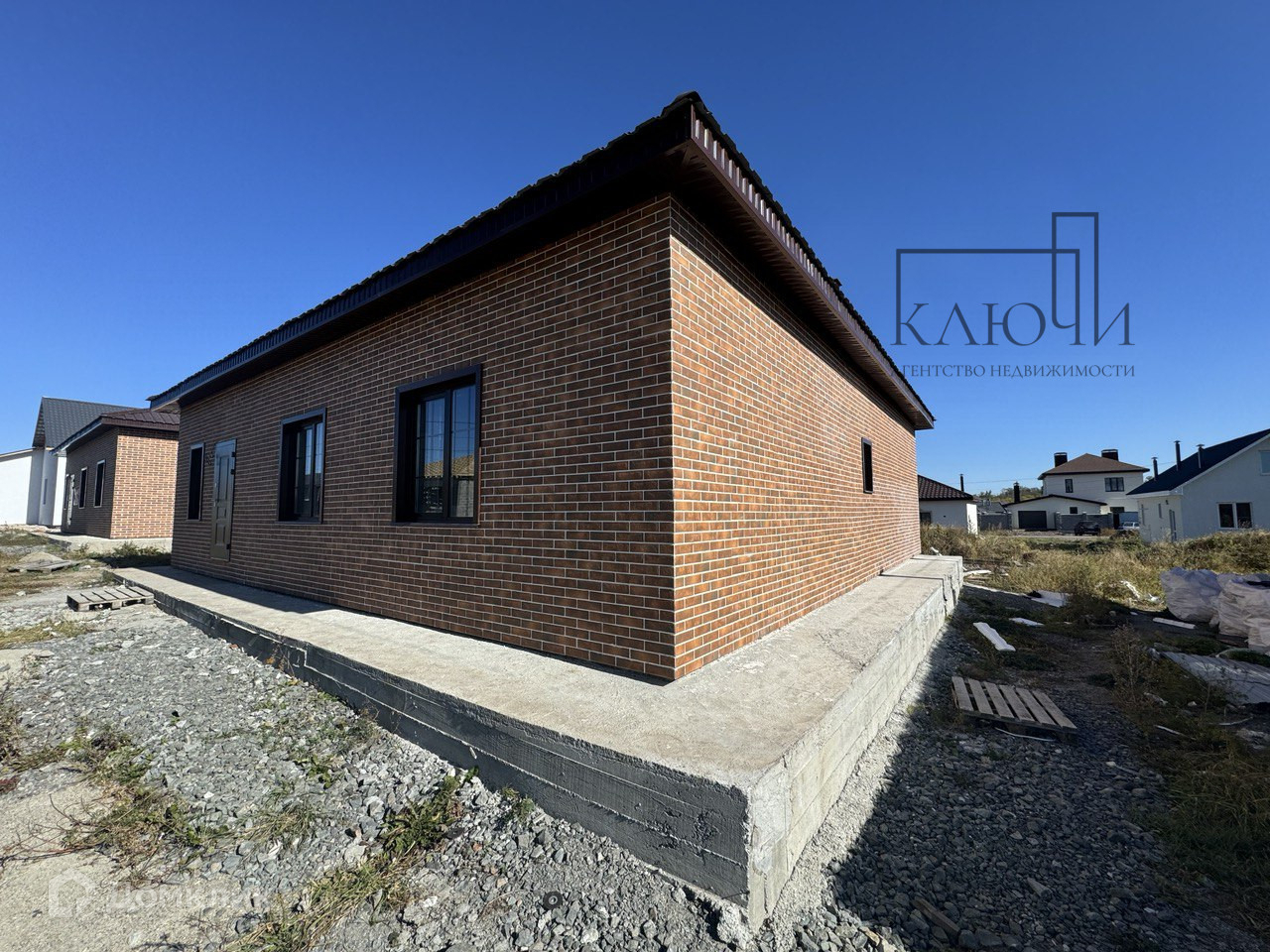 Жилой дом построен из строительного камня 400 мм с утеплением ППС 100 мм с отделкой фасада декоративными элементами. Фундамент буронабивной, залита отмостка. Окна – ПВХ профиль Rehau 70 мм. с двухкамерным мультифункциональным стеклопакетом с ламинацией с наружной стороны. Перекрытие деревянное, стропильная система обработана огнебиозащитой, утепление минеральной плитой 200мм, кровельное покрытие – металлочерепица. Объект предлагается к покупке без отделки, есть возможность выполнения предчистовой отделки и ремонта «под ключ», с включением отделочных работ в цену объекта, что особо выгодно для желающих приобрести дом в ипотеку.