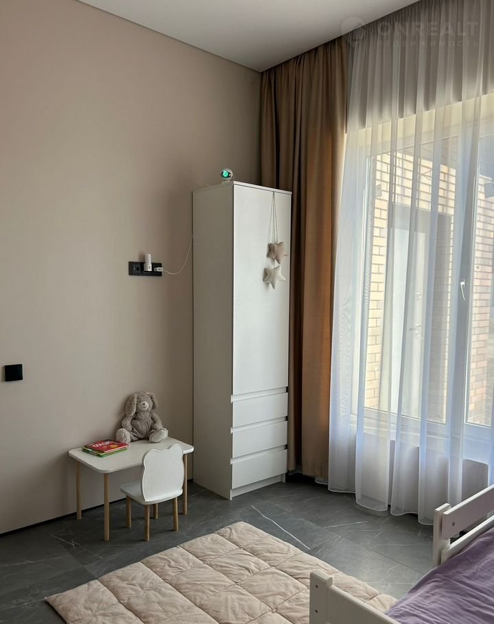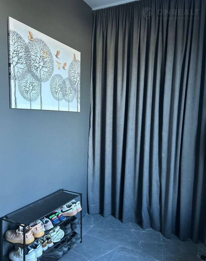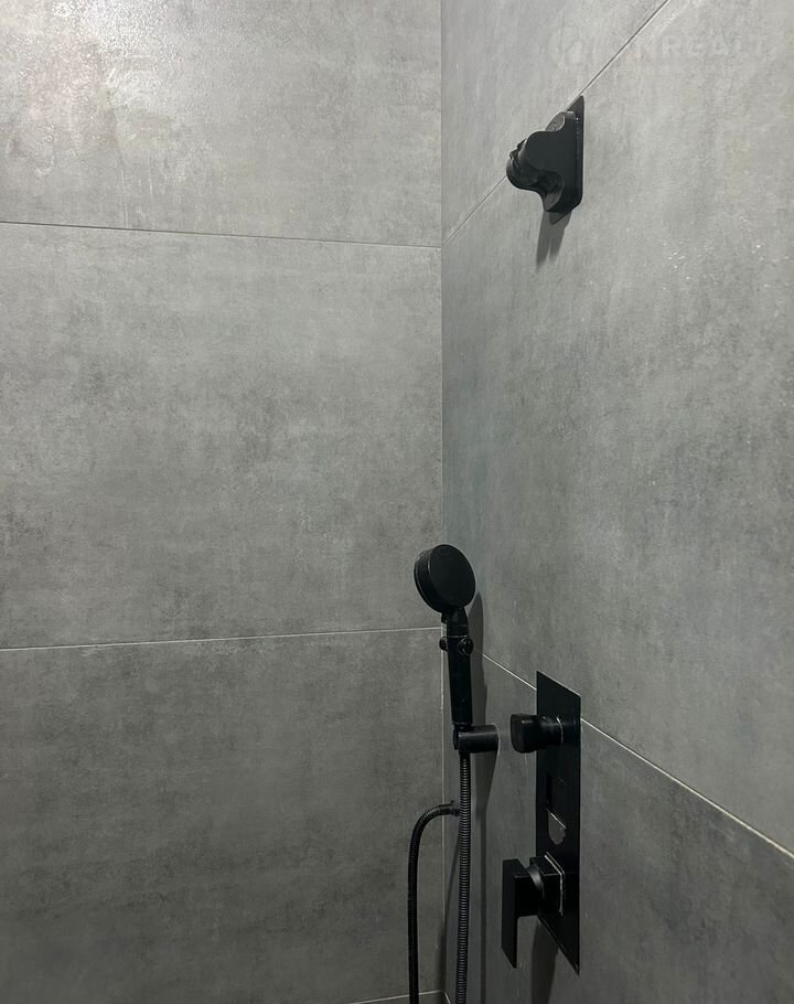 Пол покрыт широкоформатным керамогранитом, стены выровнены и окрашены качественной краской. Установлены скрытые плинтусы и двери, подоконники выполнены из керамогранита. Натяжной потолок.