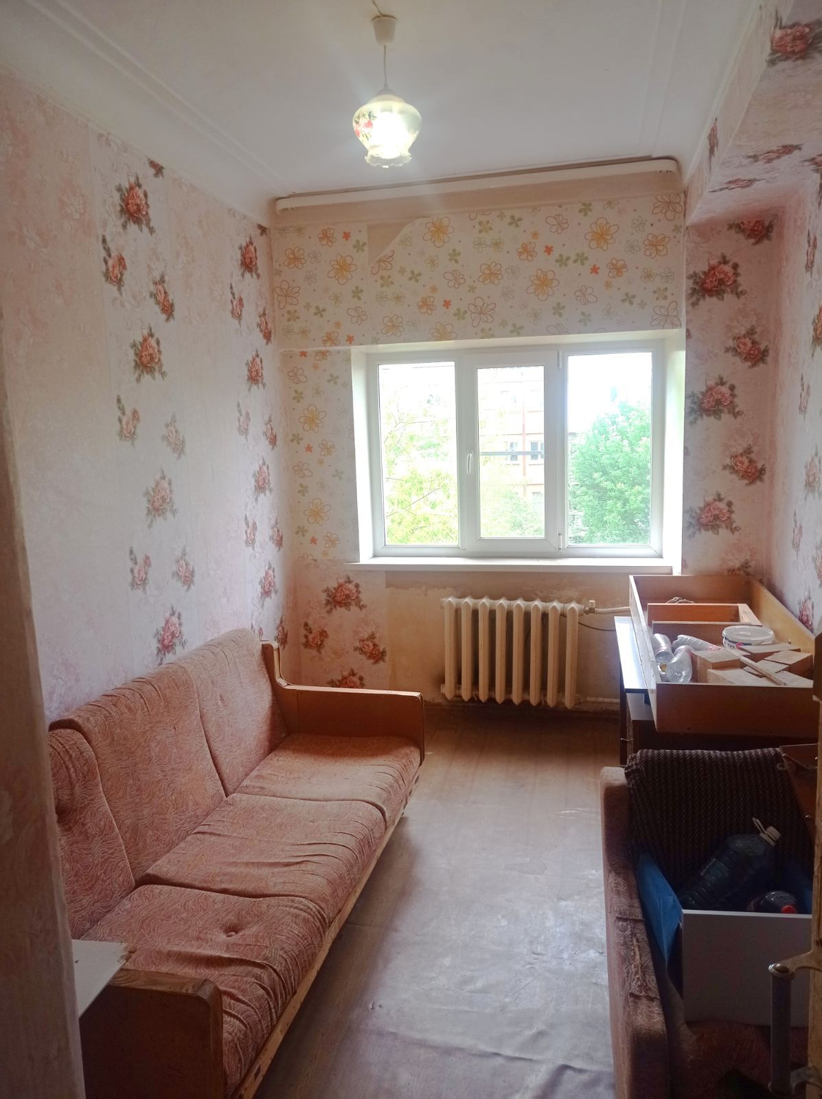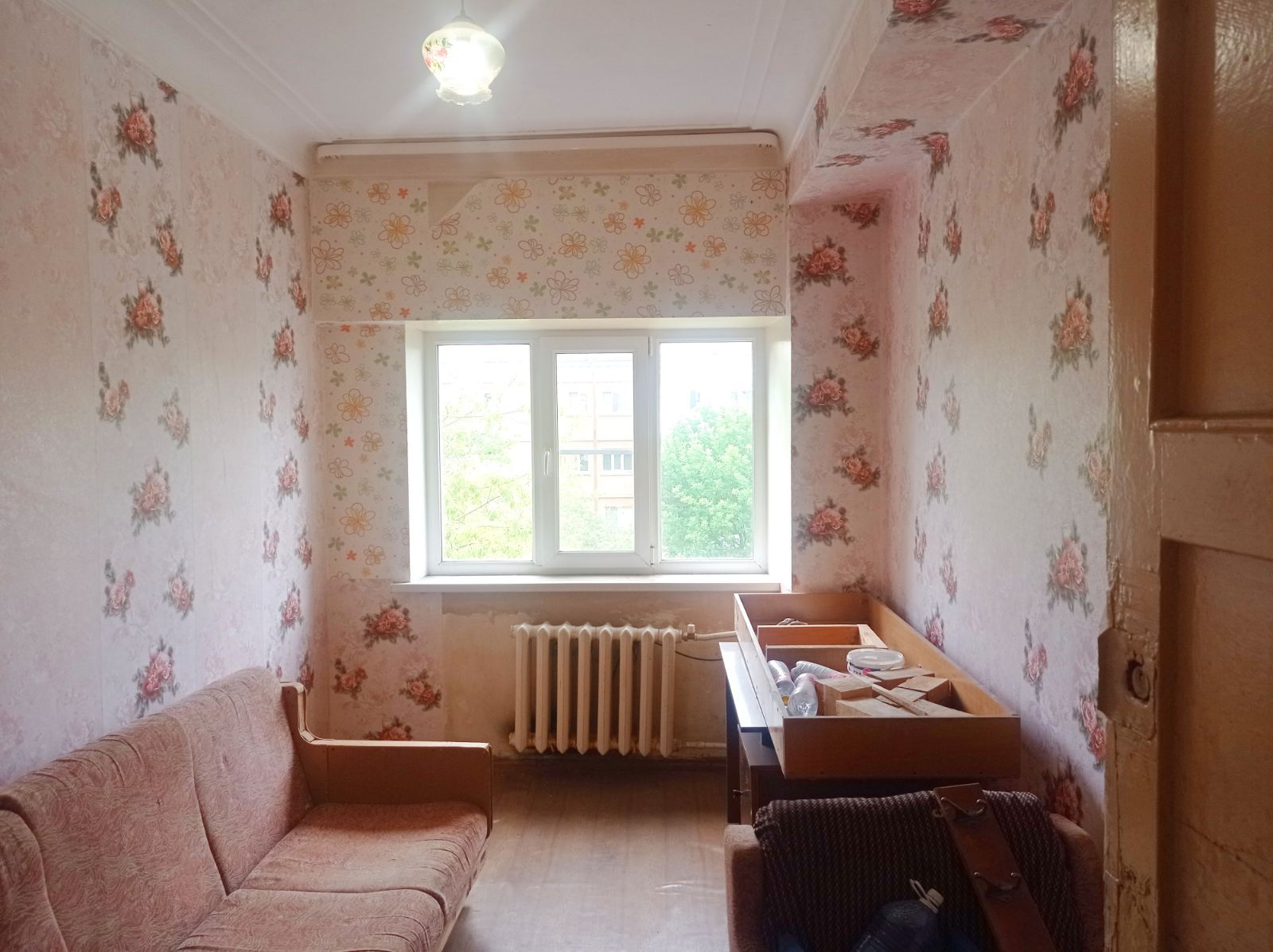 В комнате пластиковое окно, мебель, можем оставить по договоренности.