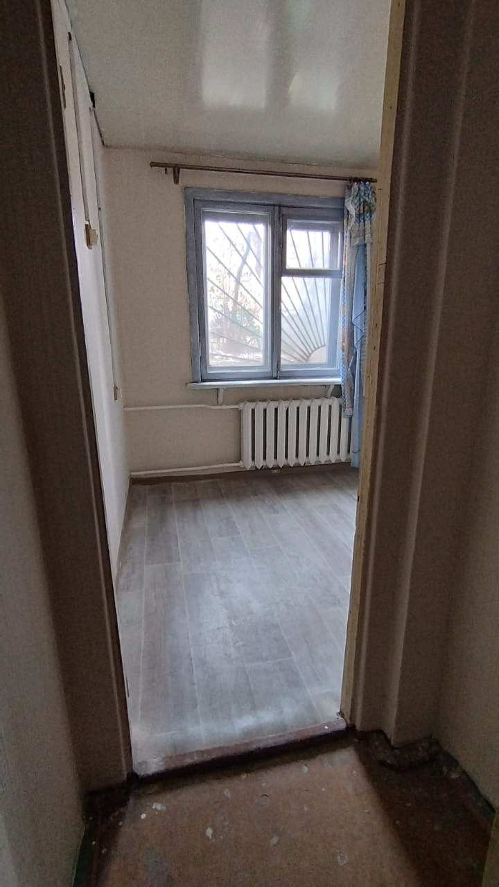 Санузел совмещенный, полностью в кафеле. Все окна находятся в одном уровне с землей и имеют полноразмерный вид. Высота потолка 2,5 м. Комнаты раздельные по 13 м2 + кухня 6 м2. Выполнена пластиковая разводка труб водоснабжения.