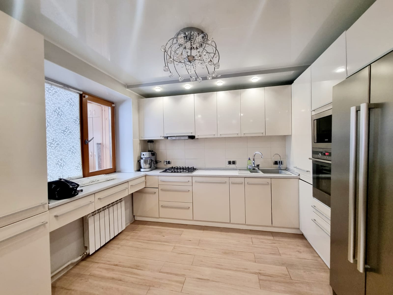 Продается шикарная двухэтажная  пяти-комнатная квартира в идеальном состоянии, выполнен качественный ремонт по дизайн-проекту, остается вся мебель и техника. Первый этаж: ︎ кухня-гостиная с камином, кабинет, две гардеробных (одна из которых легко переделать в спальню), сан/ узел.  Второй этаж: три комнаты, санузел 14 м2, в котором установлена полноценная баня (каменка, инфракрасная сауна), джакузи. Высота потолков 3,5 м. Лестница-ясень. Кондиционер, телые полы на кухне, гостиной, в сан, узлах. Две лоджии застеклены качественными пластиковыми окнами. Очень чистый подьезд. В шаговой доступности школы, садики, магазины, в трех минутах ходьбы охраняемая парковка Документы готовы, возможно в ипотеку. Чистая продажа, ключи сразу после расчета. Торг!