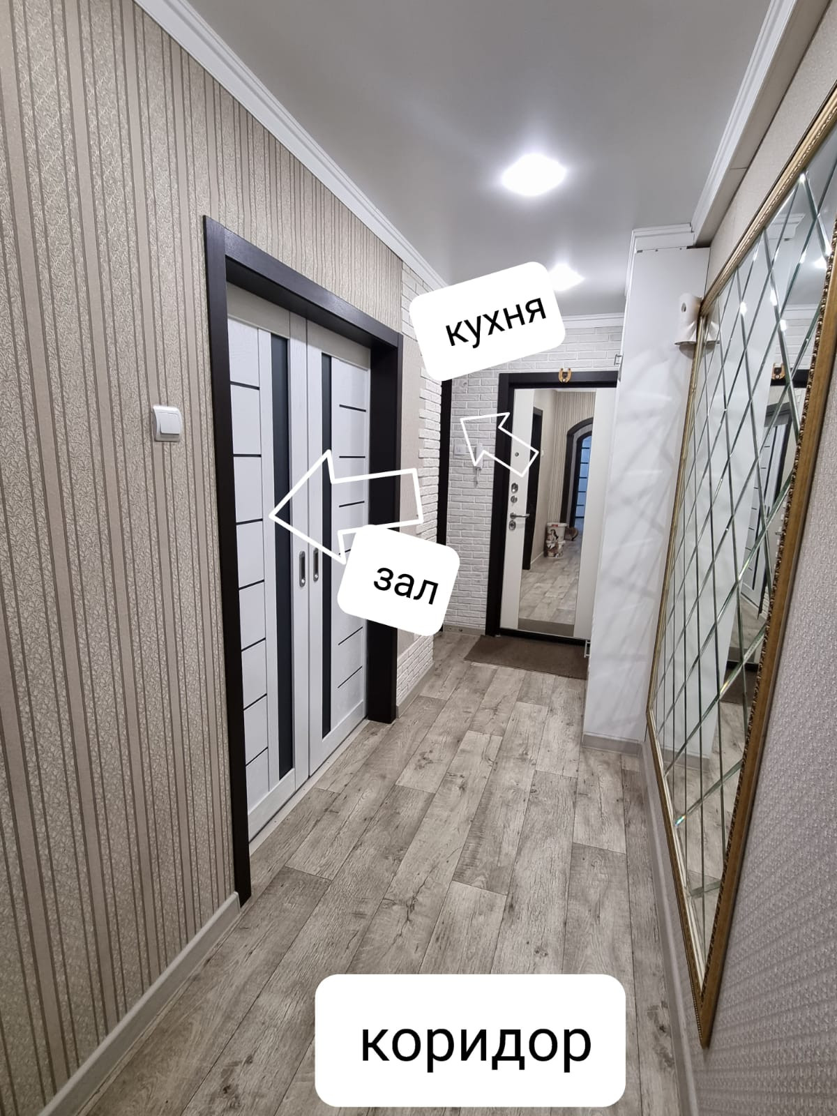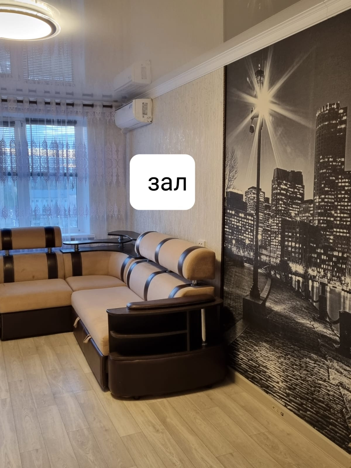✅Зал- свежий ремонт,пол линолеум, потолок натяжной,двери купе качественные.Окно пластик.Новый кондиционер (остаётся)