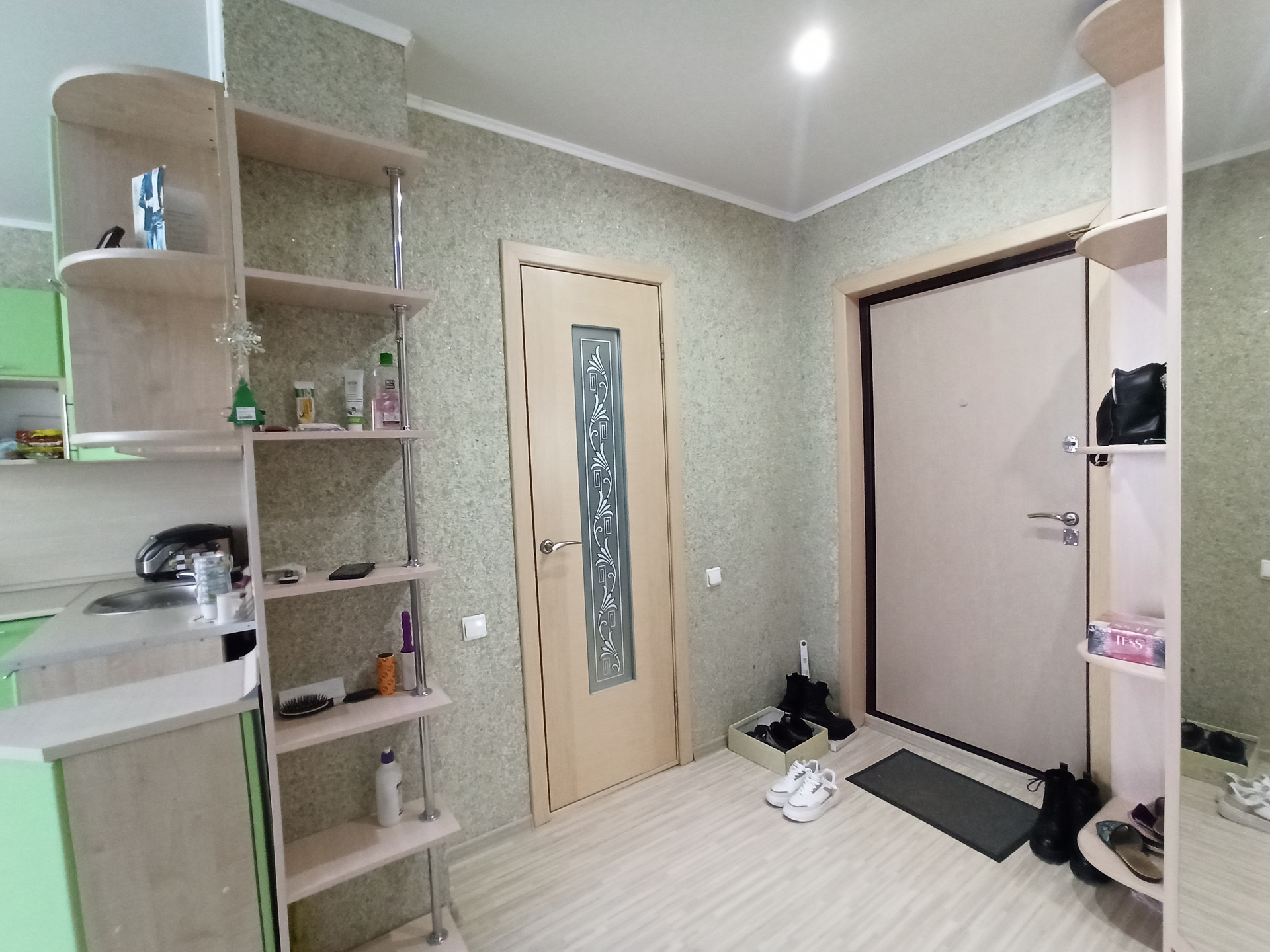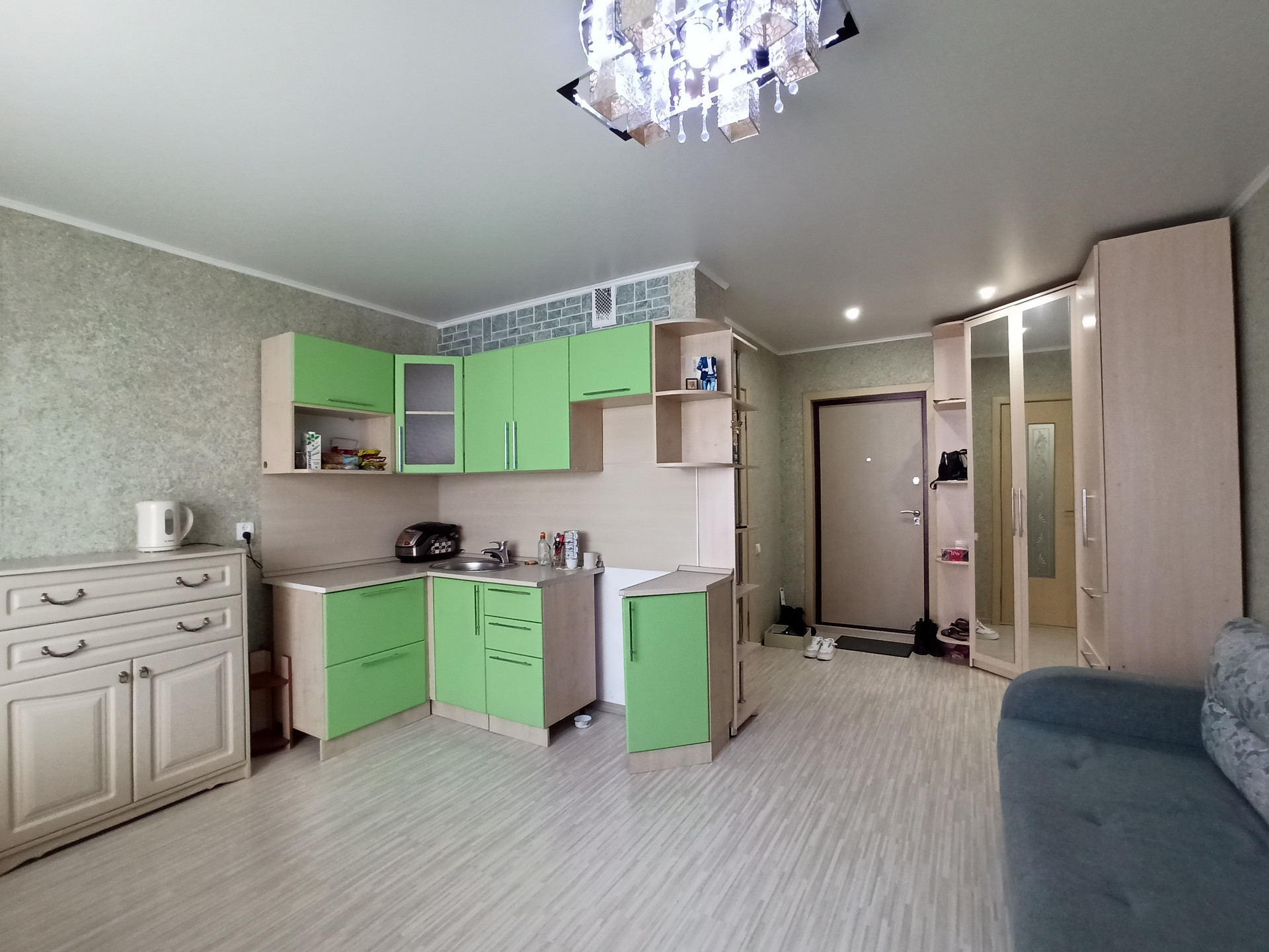 В продаже замечательная квартира – студия 23,9 кв. м с хорошим ремонтом, в активно развивающемся районе города. Стены выровнены, нанесены жидкие обои приятных тонов, пол – стяжка, ламинат, матовый натяжной потолок, окна пластиковые, меж. комнатная дверь в сан. узел, качественная входная дверь, пластиковое остекление лоджии. Сан. узел в кафеле, трубы водоотведения и канализационные пластиковые, сан. техника в хорошем, исправном состоянии.