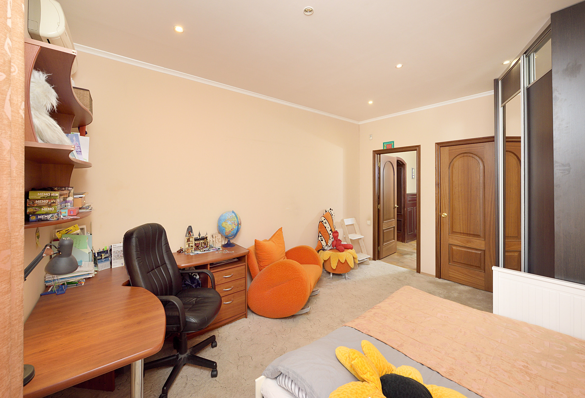 В продаже просторная квартира нестандартной планировки в Ленинском районе города. Общая площадь квартиры 188 кв.м. Квартира перепланирована из двух квартир. Перепланировка максимально продумана и узаконена! Пространство квартиры включает в себя: большую гостиную, столовую, кухню с кладовкой, кабинет, детскую комнату, спальню, тренажерный зал, два больших санузла (гостевой и личного пользования), три балкона. Спальня и детская оборудованы отдельными гарберобными комнатами. Квартира в хорошем состоянии, готова для проживания. На полу – паркетная доска и керамическая плитка. Двери – массив. Сан.узлы отделаны кафельной плиткой. Балконы застеклены. При продаже частично остается мебель, техника, кондиционеры, предметы интерьера и текстиль. Квартира тихая, окна на две стороны: север-юг. В подъезде всего 4 квартиры. Данная квартира занимает всю площадку 3-го этажа. Район очень удобный, с развитой инфраструктурой. Детский сад, школа, благоустроенные скверы, магазины, аптеки – все в шаговой доступности. Рядом с домом есть гараж на две машины. Условия покупки гаража обсуждаются отдельно. Квартира подходит под ипотечное кредитование в любом банке. Собственники взрослые. Показ – в любое удобное для вас время!