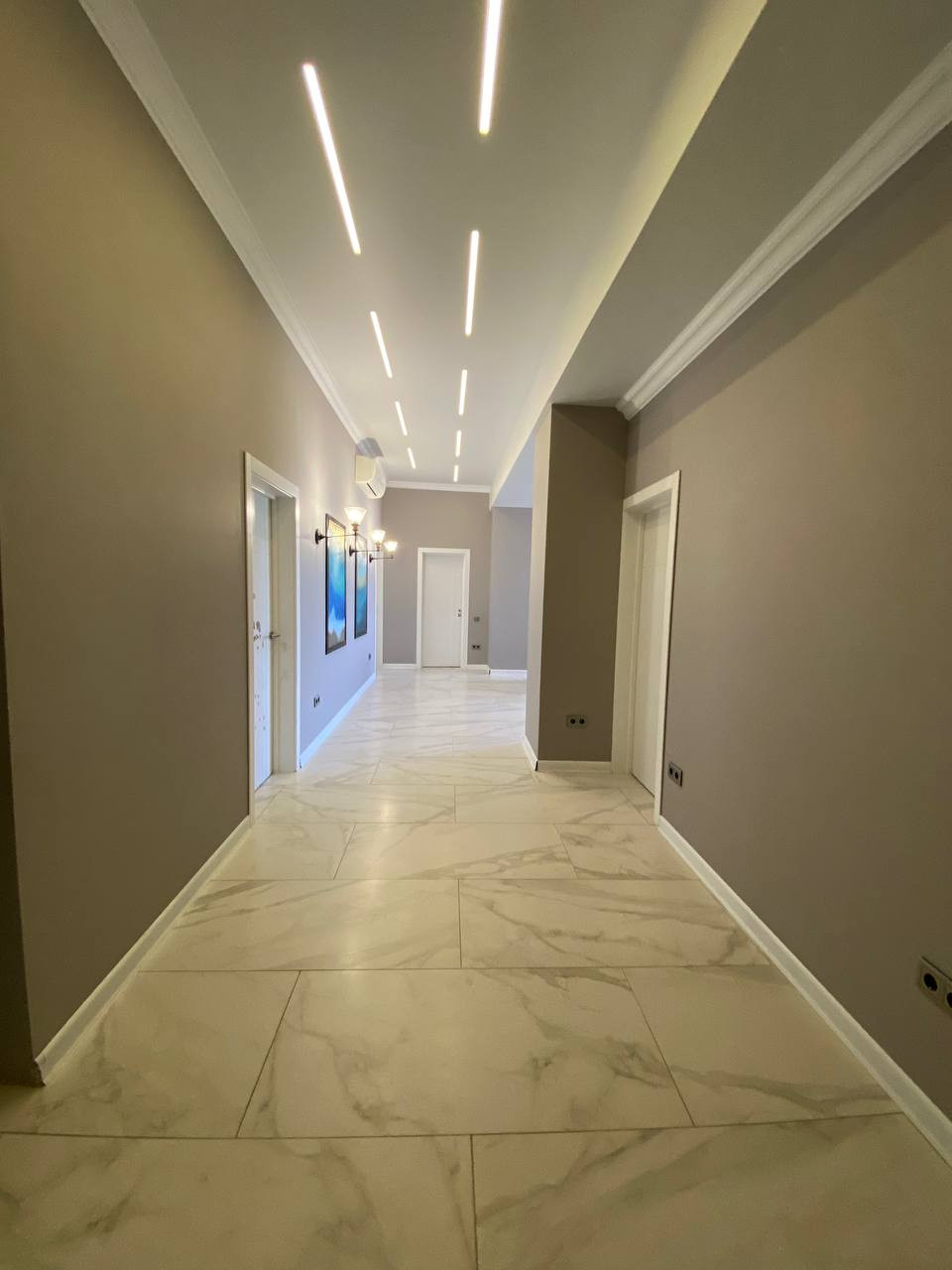 В квартире сделан качественный  ремонт, в детской комнате - звукоизоляция, тёплые полы, кондиционер, на входной двери установлен кодовый замок ( сканирование  отпечатка пальца ).