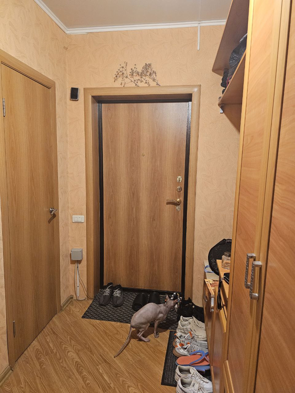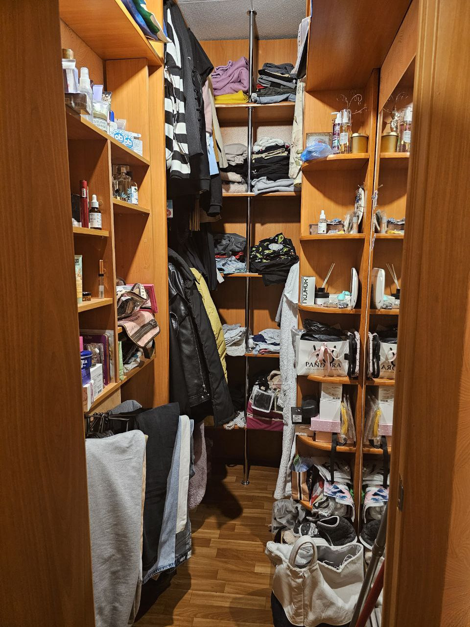 Имеется небольшая, эргономичная гардеробная, с плательными отделениями и полочками.