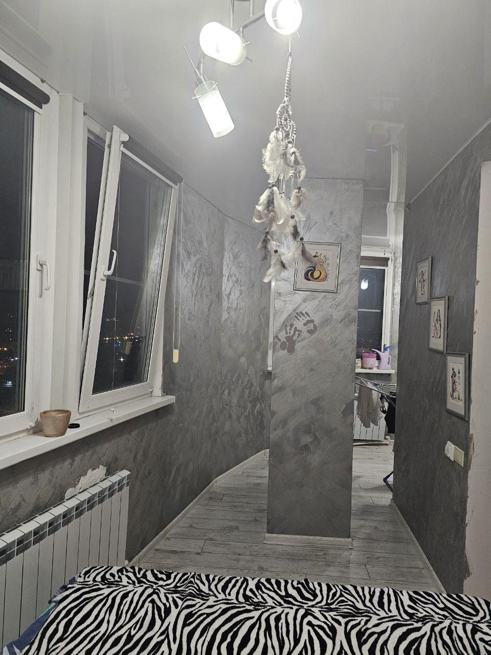 Квартира-студия, имеется большой балкон, утеплён, используется, как полноценная комната (спальня): тёплый пол, установлены батареи, зимой очень тепло.