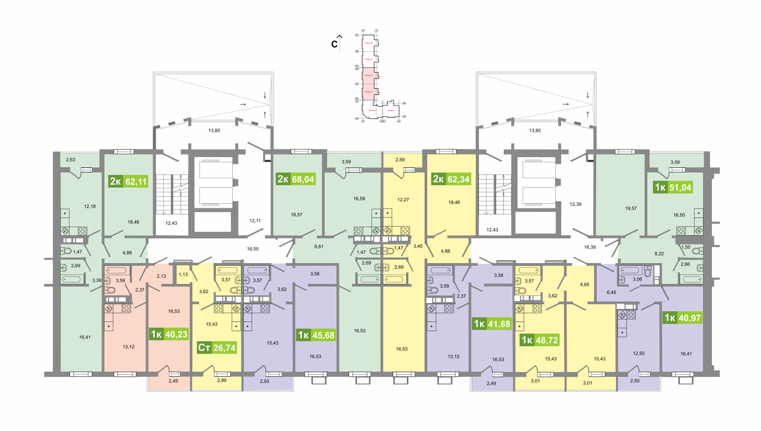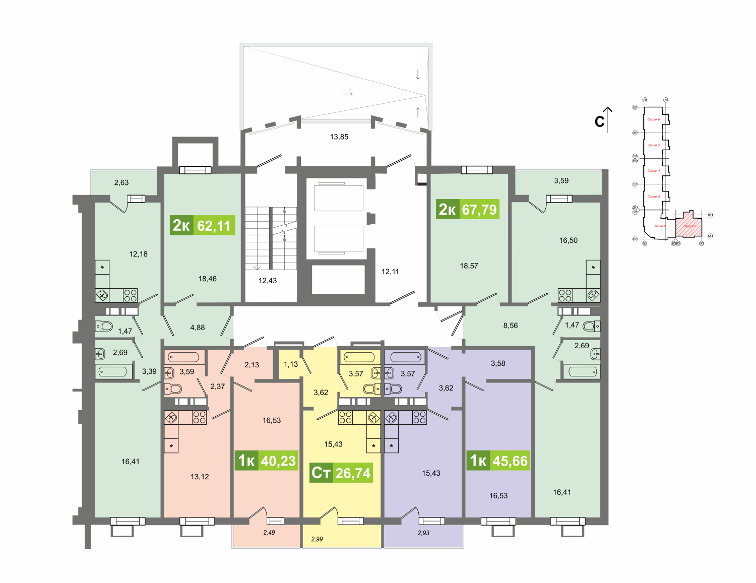 Общая площадь 26.74 м2