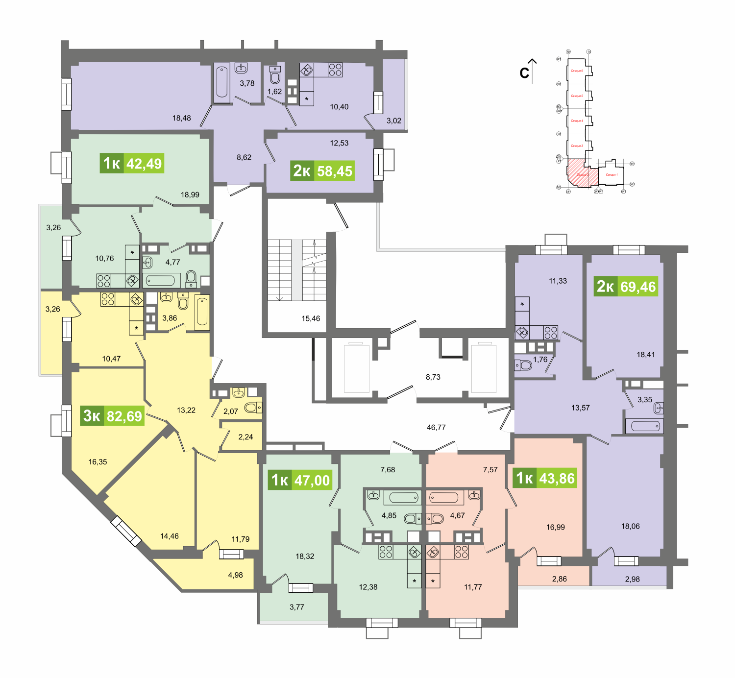 Жилая площадь 15.43 м2