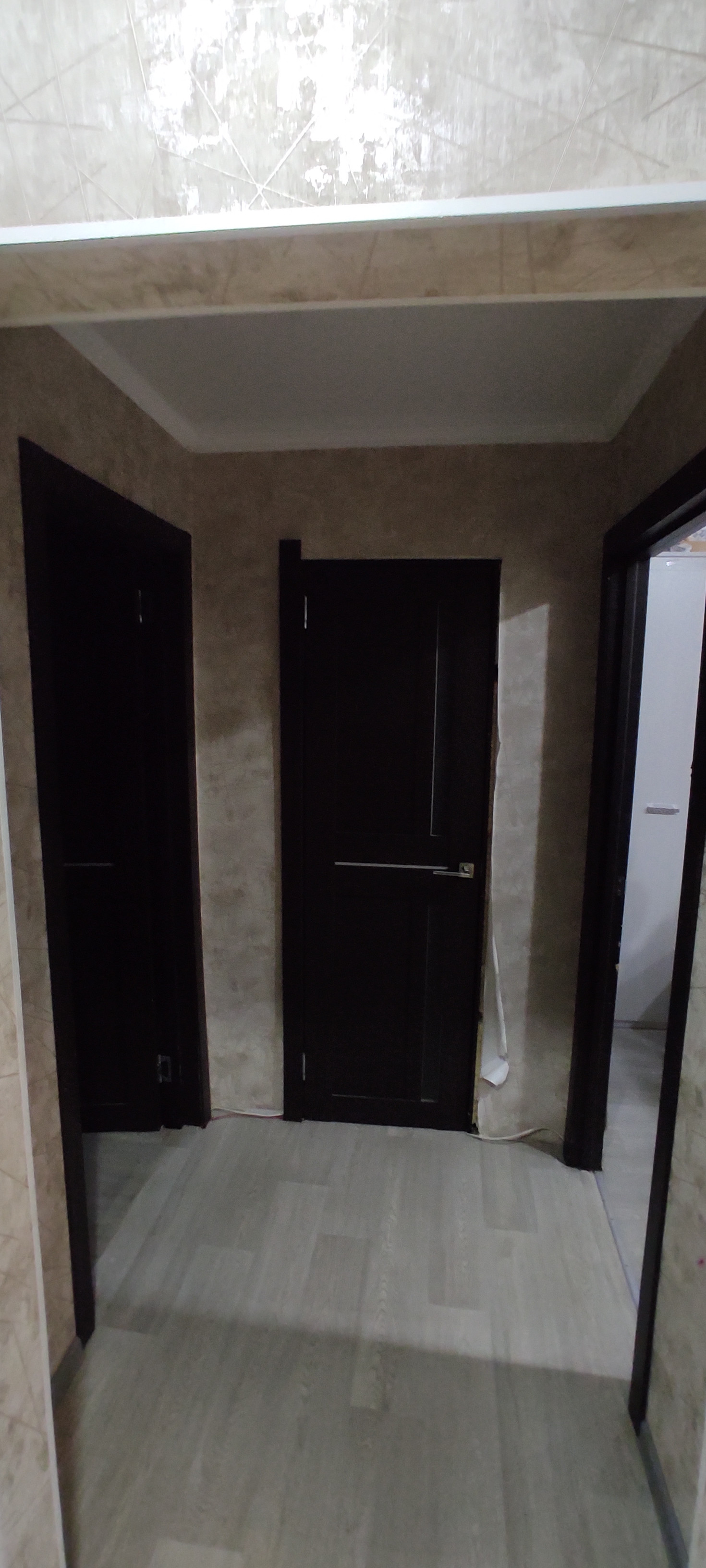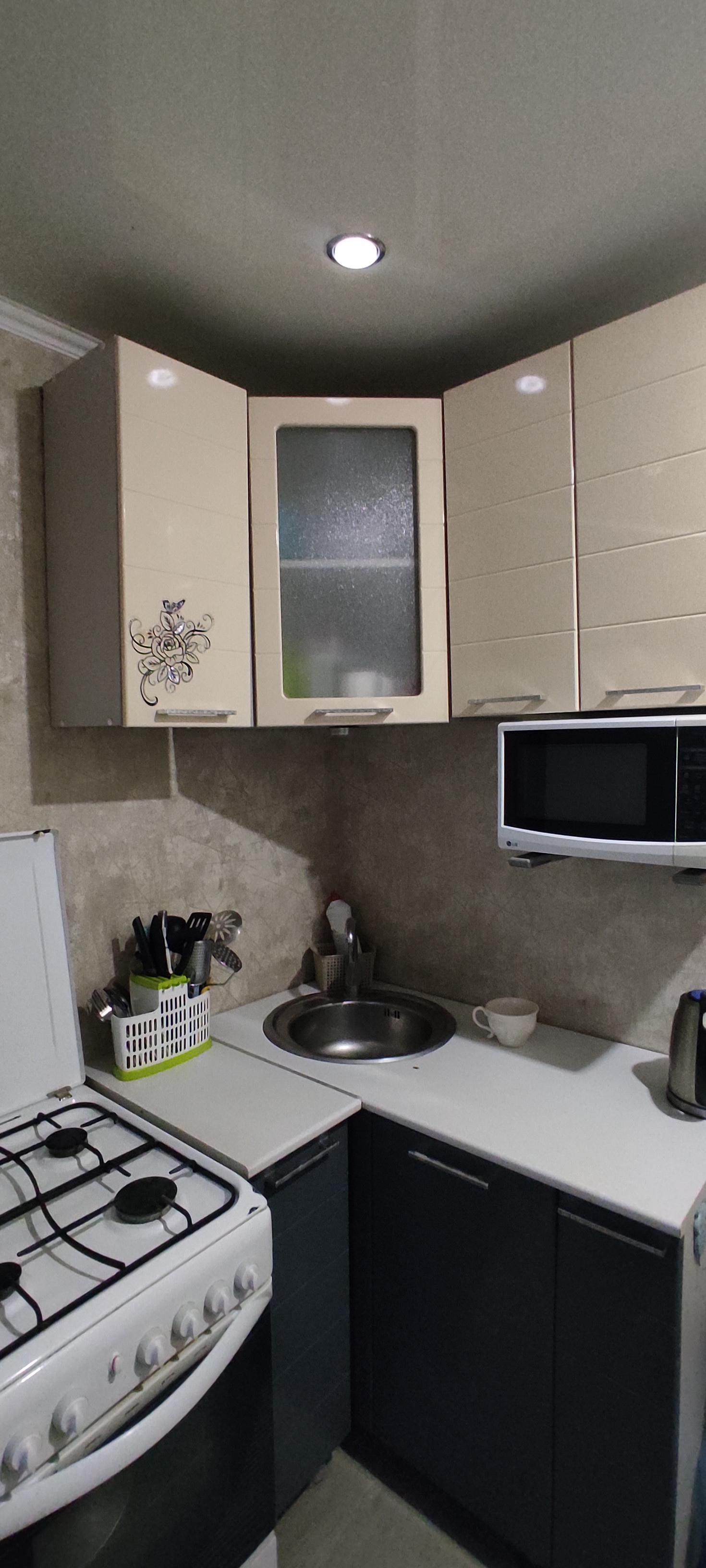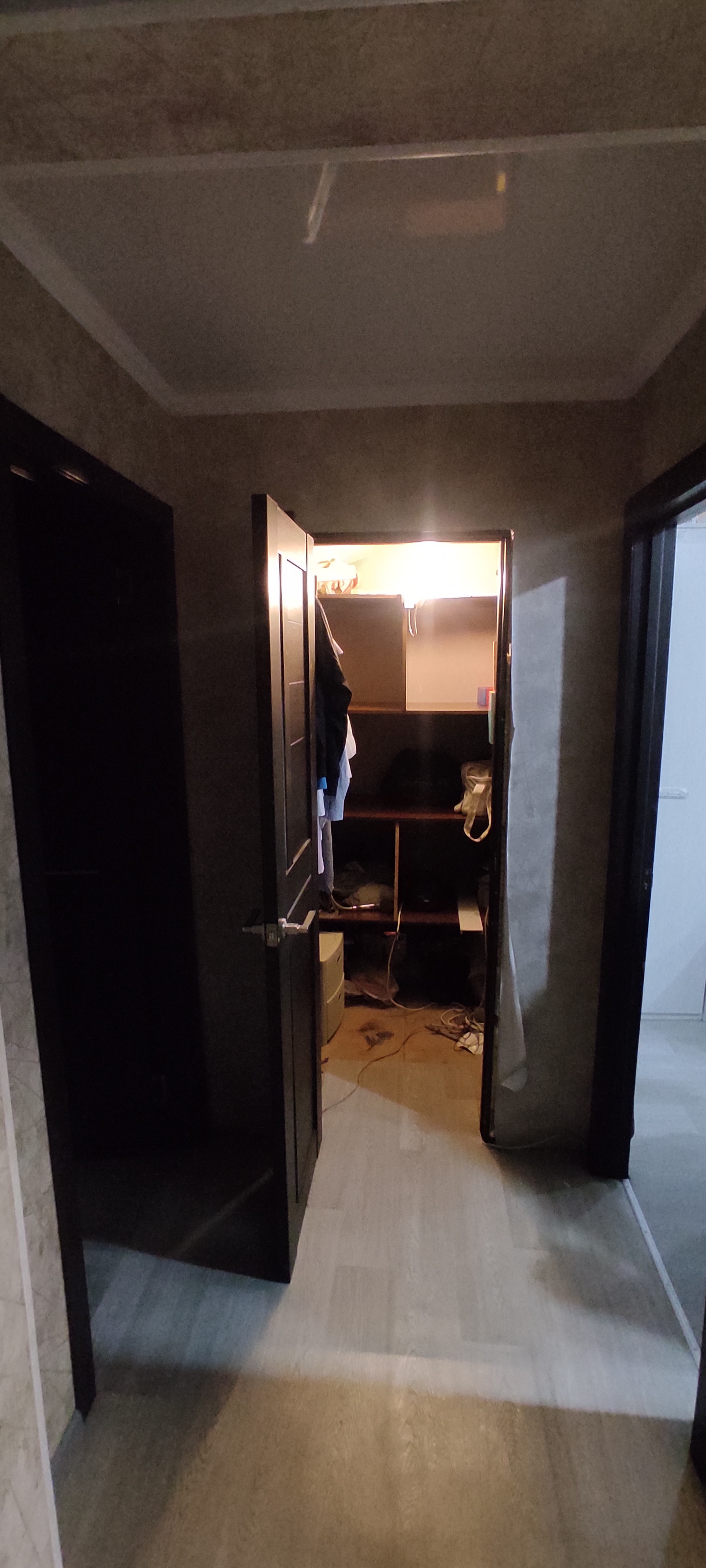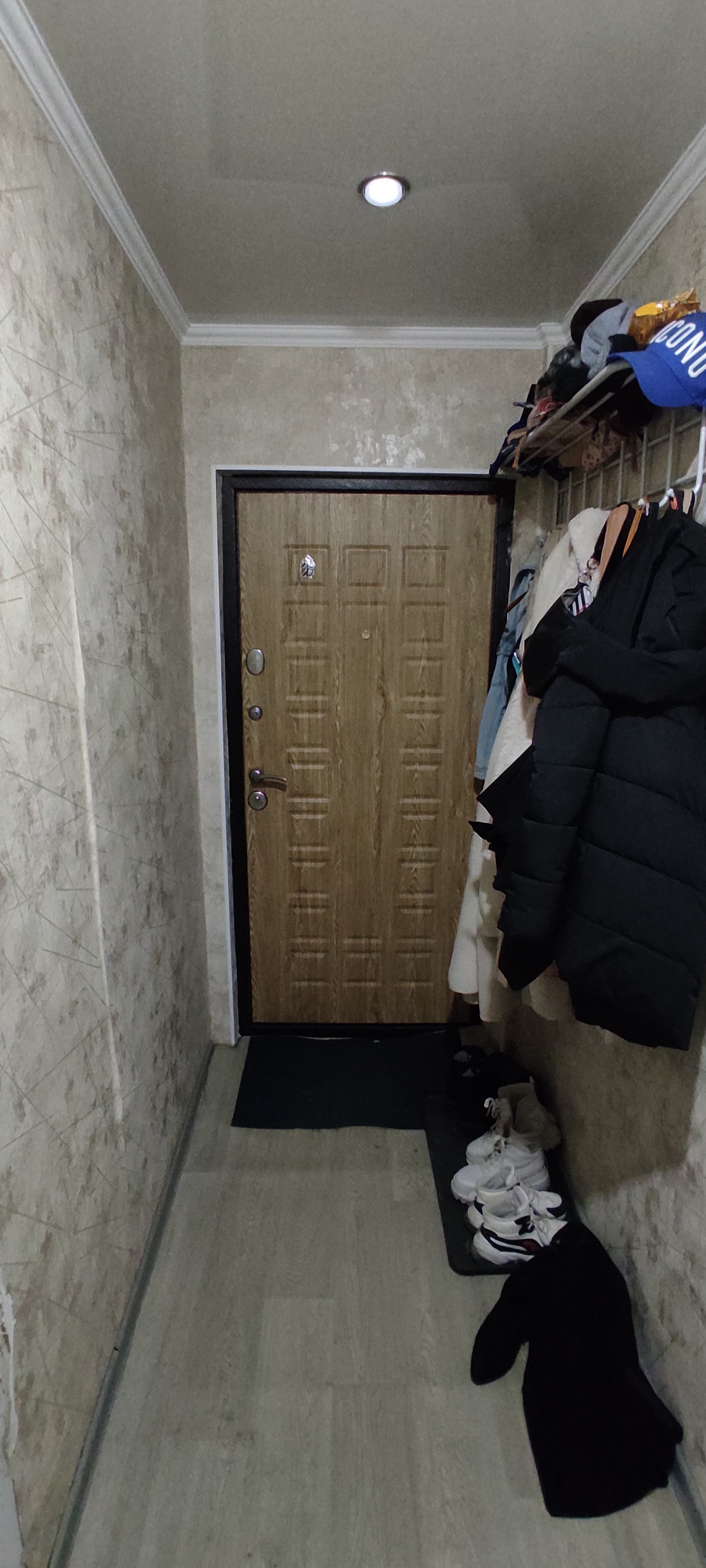 Квартира в хорошем жилом состоянии. Окна пластиковые, потолки натяжные, заменены межкомнатные и входная двери, на полу линолеум. Есть вместительная кладовка. Санузел совмещён, подготовлен к ремонту, трубы поменяны на пластик. Спальня в обычном состоянии, остаётся шкаф.